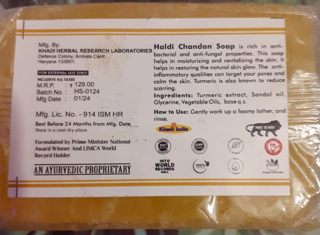 Handmade Soap with Turmeric and Sandalwood (125 G), Haldi & Chandan Body Wash, Khadi Mauri