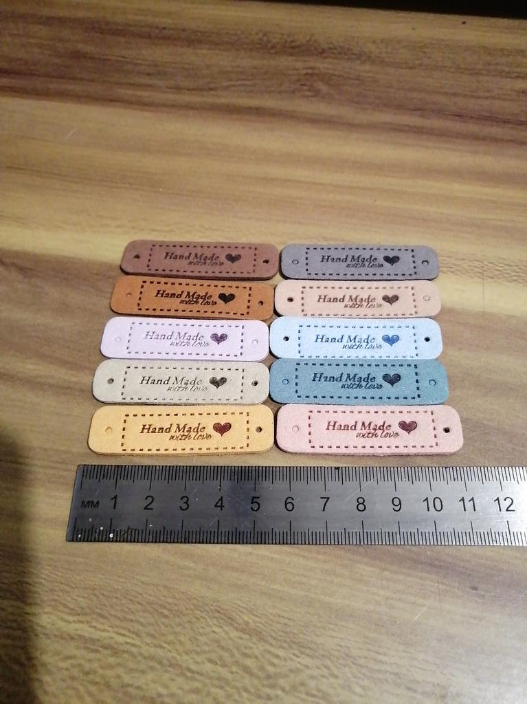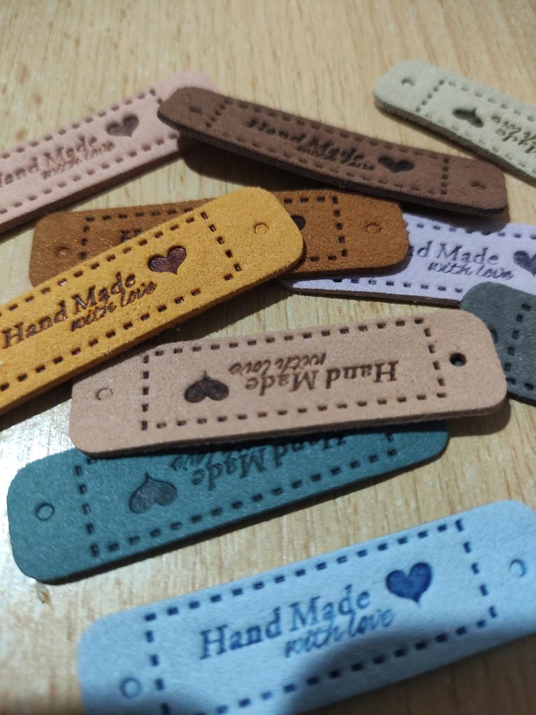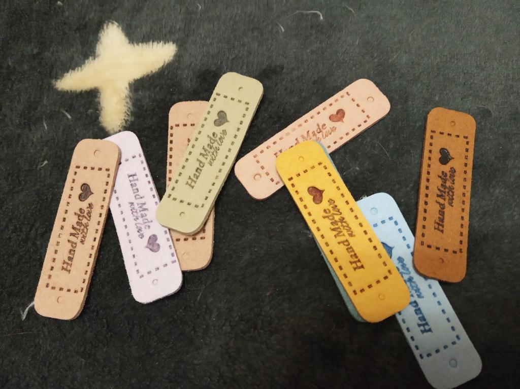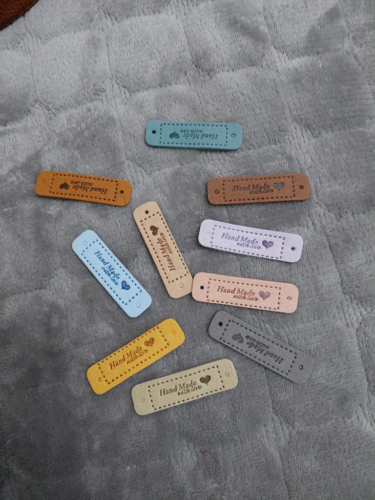 10Pcs Hand Made with Love Labels Tags for Clothes Handmade PU Leather Labels DIY Hats Bags Sewing Tags Garment Accessories