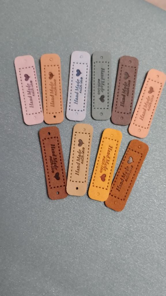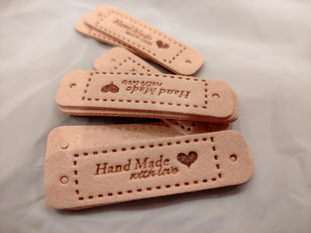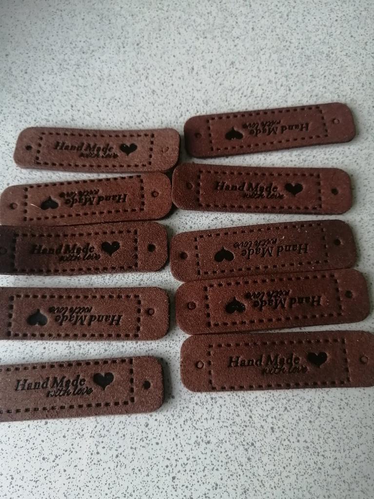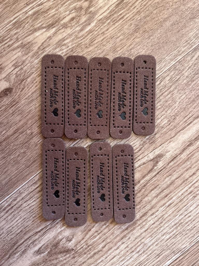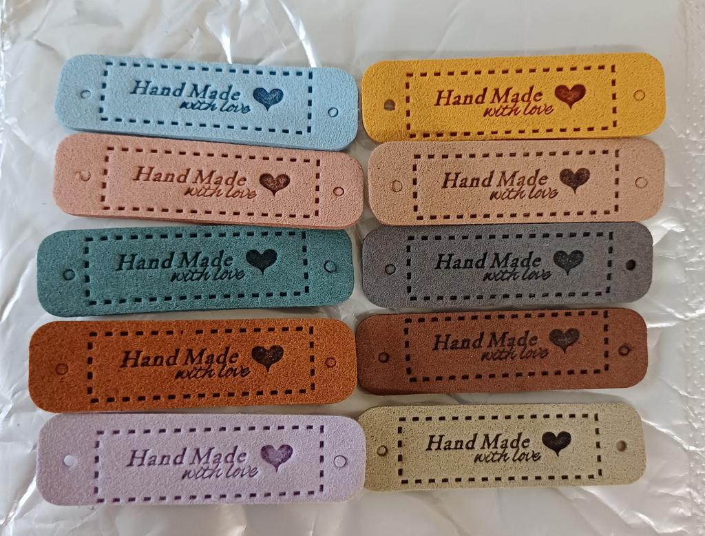 10Pcs Hand Made with Love Labels Tags for Clothes Handmade PU Leather Labels DIY Hats Bags Sewing Tags Garment Accessories