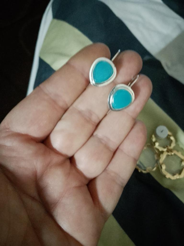 The earrings are so beautiful, small, high-quality. I liked them, they arrived on time without damage. I recommend And what color is something! The sky is incredible! Thank you.