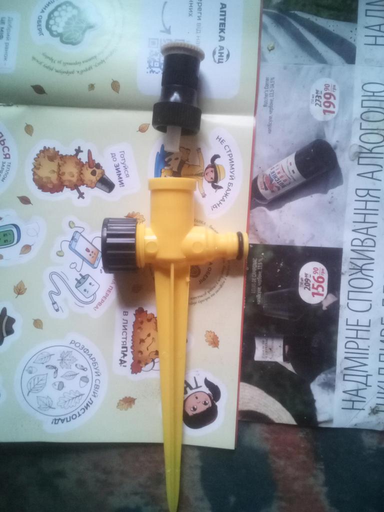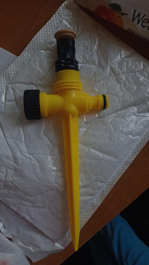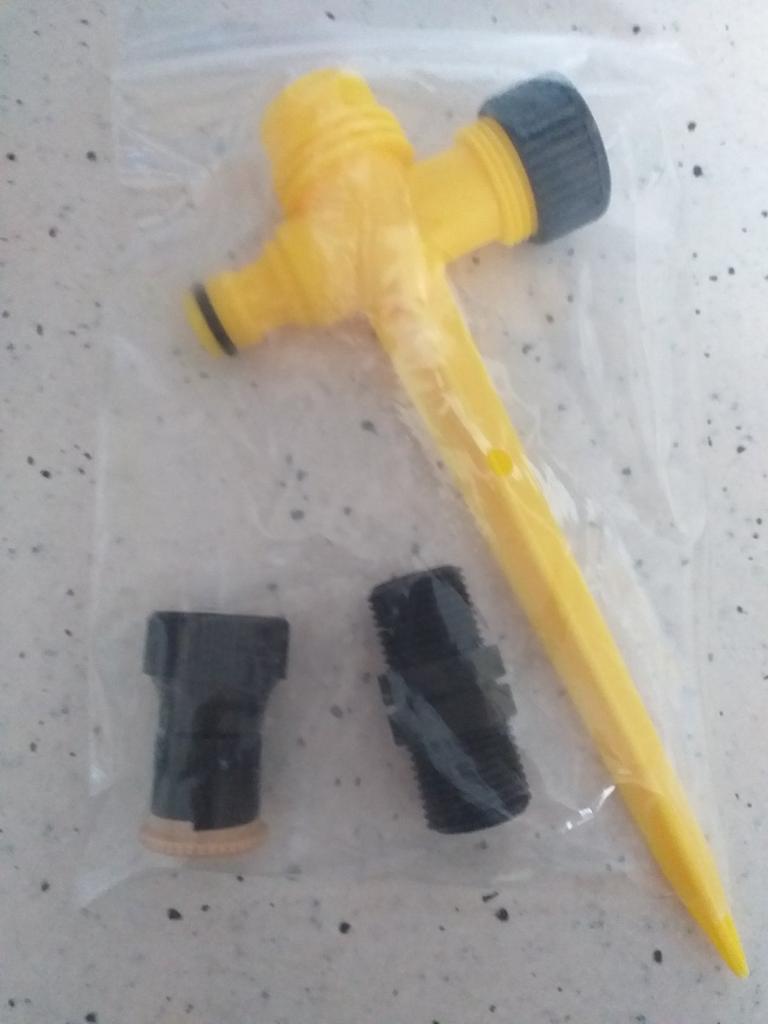 I purchased a 360 degree rotating irrigation piece but it turned up incomplete as there is no 360 nozzle with it!!! All there is is the ground stake, as per the picture!