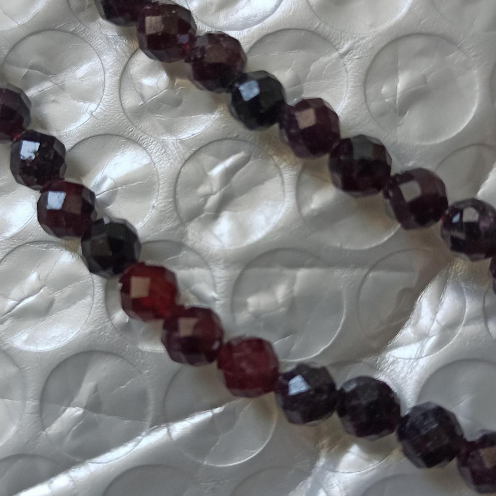 Excellent beads. Not plastic, real faceted garnets. Very beautiful! don't go wrong with the size