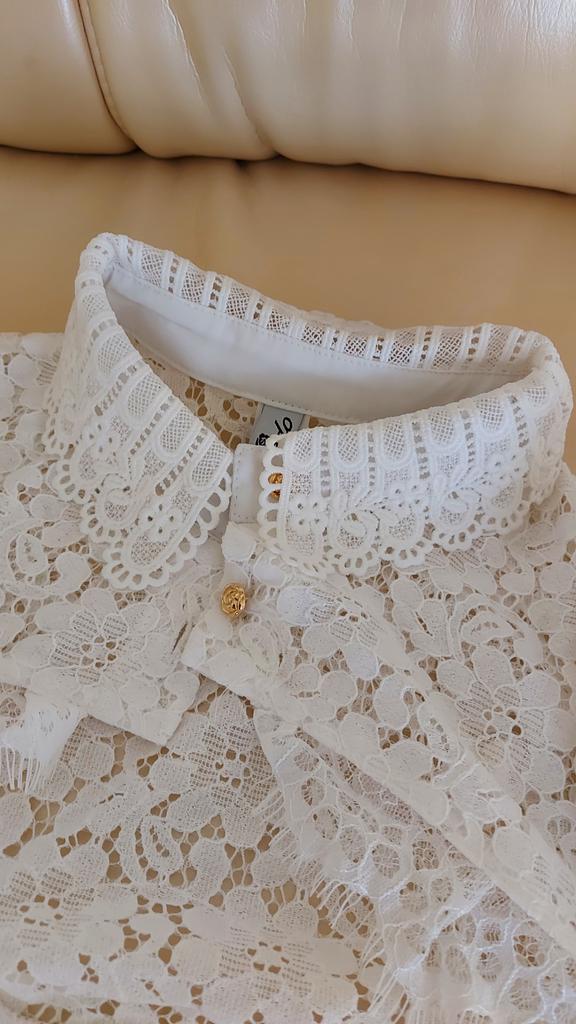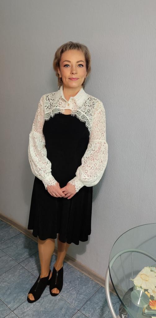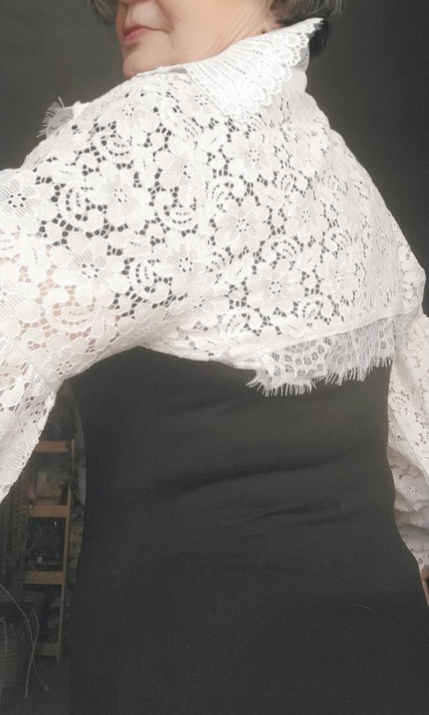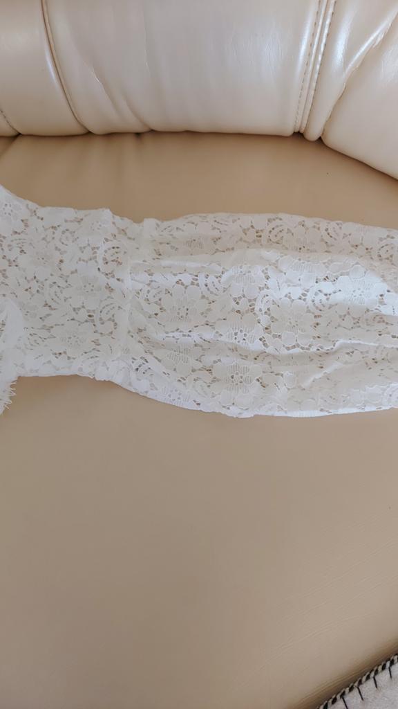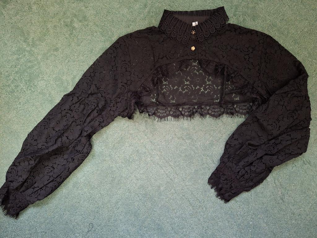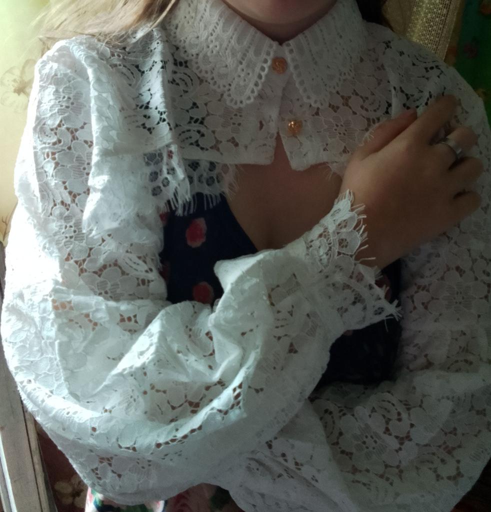 Bolero made of openwork lace fabric. Very originally sewn. Previously ordered and already received black. Wanted to have white too. Or maybe as a gift... Still thinking, that's why I didn't unpack... I received 12 orders in the parcel. Everything is ok Gifted by my cousins 🥳 Thank you joom