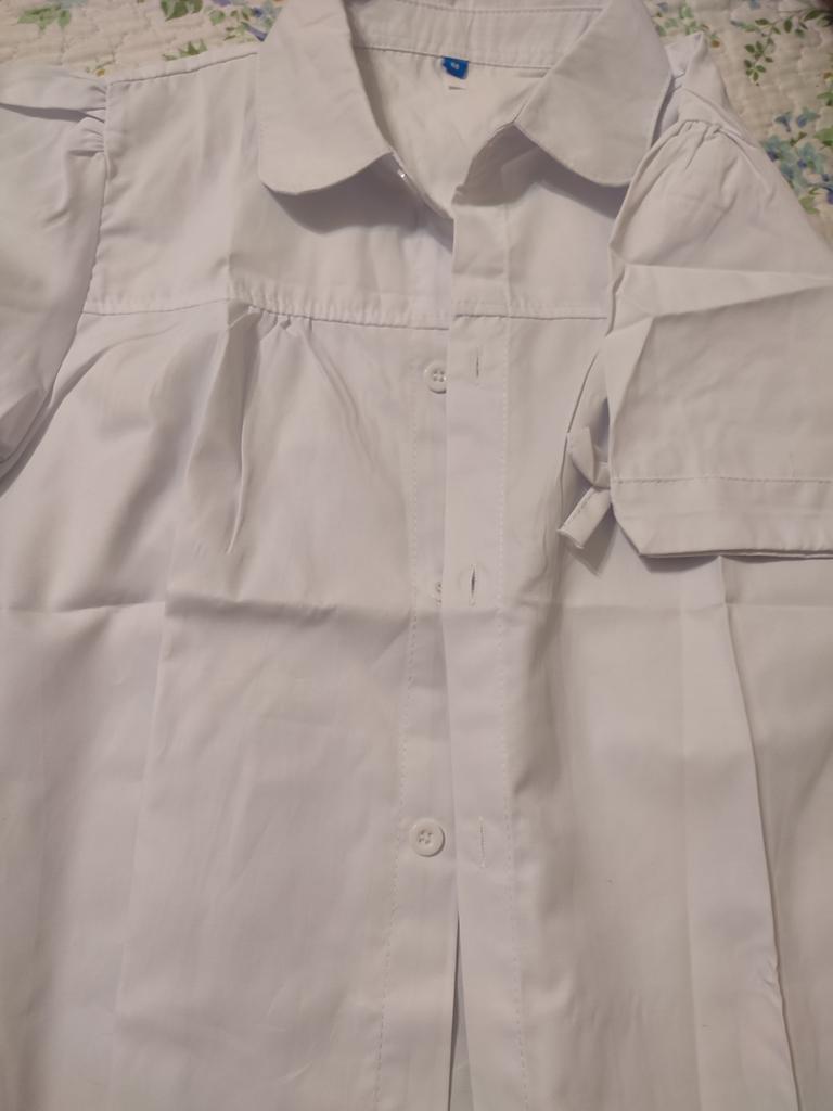 The blouse is good. The tailoring is excellent, for a girl 110 cm tall, we ordered size 120, the blouse is just right. The fabric is very thick for a blouse.