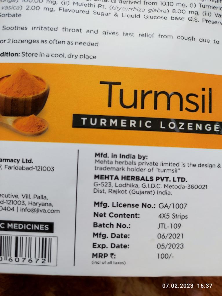 Curkey Pastilles for Fast Sore Throat Relief from Natural Curcumin Extract | Sugar Free 10 Lozenges (pack of 1)