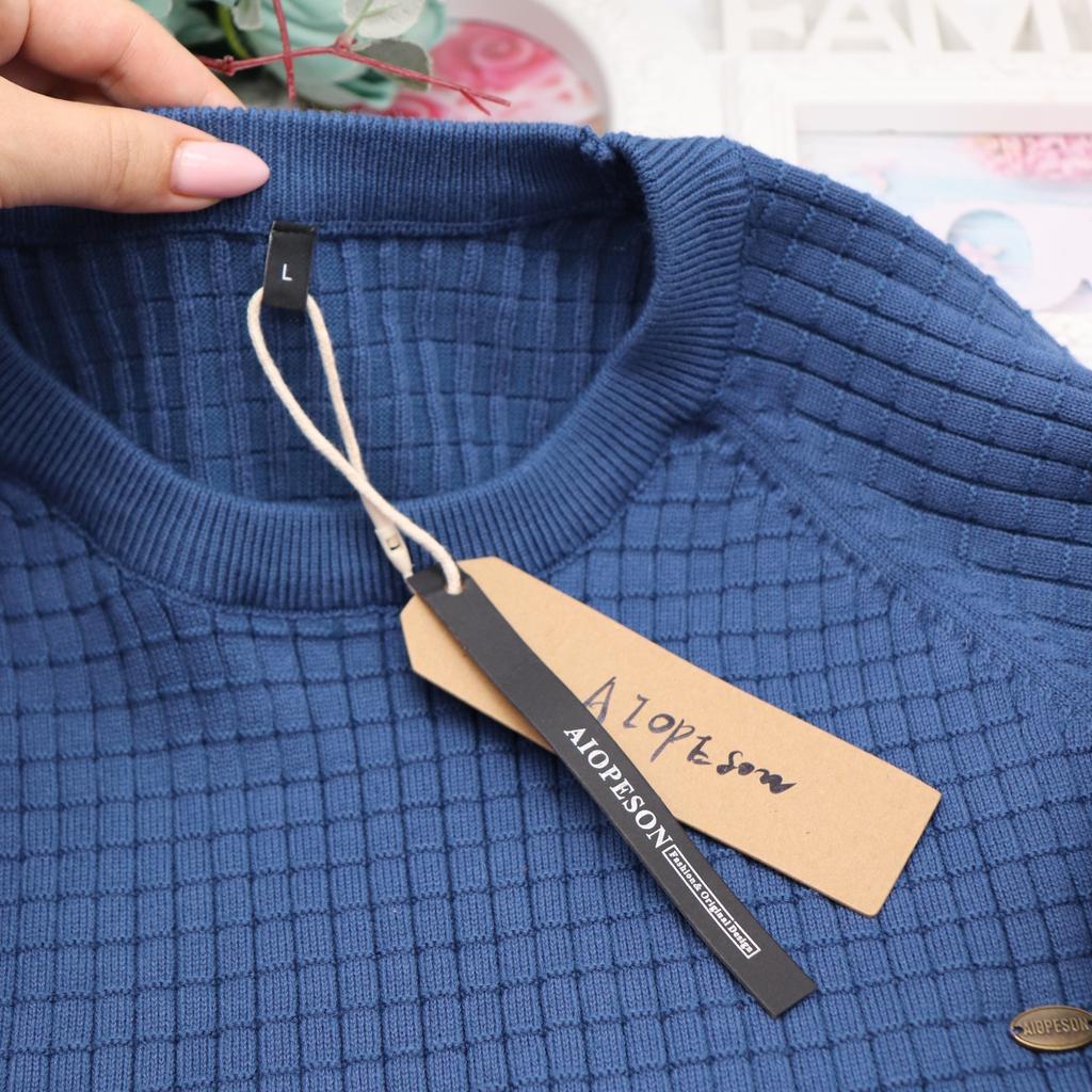 AIOPESON Cotton Men's Sweater 2022 New Winter Autumn Soild Plaid O-neck Pullover Male Quality Sweaters For Men Fashion Clothing