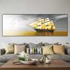 Landscape Calm Lake Golden Long Bridge Tree Scene Canvas Painting for Modern Wall Art Living Room Bedroom Home Decor No Frame