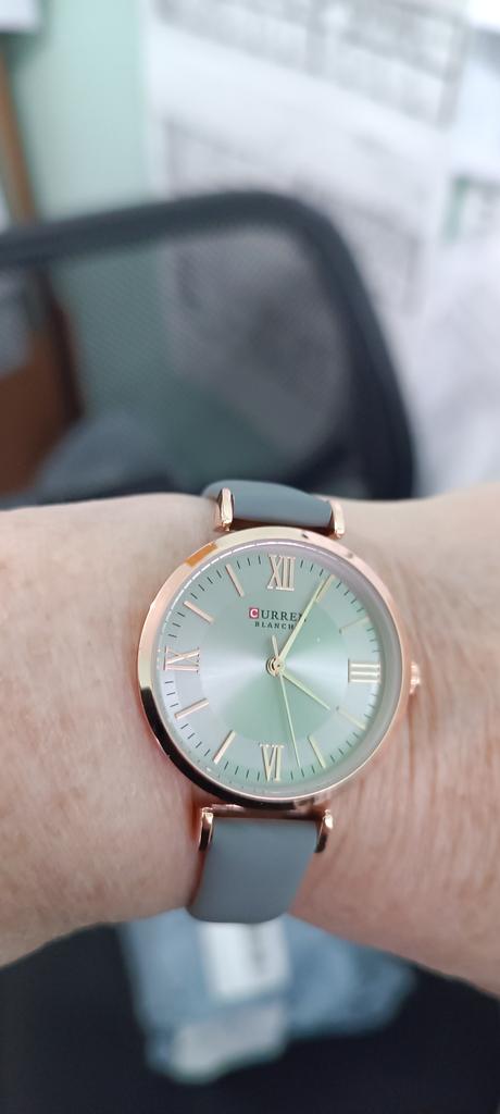 The watch is very stylish, a delicate light green color.