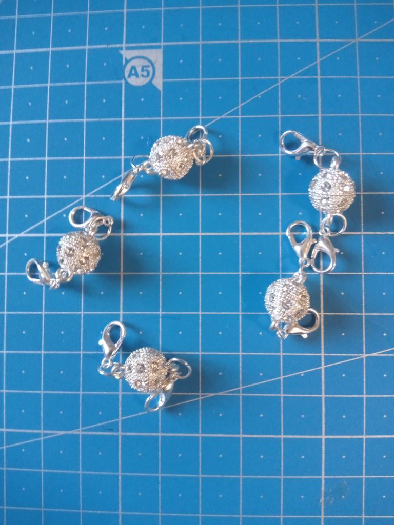Beautiful magnetic clasps, small and neat. They hold up well.
