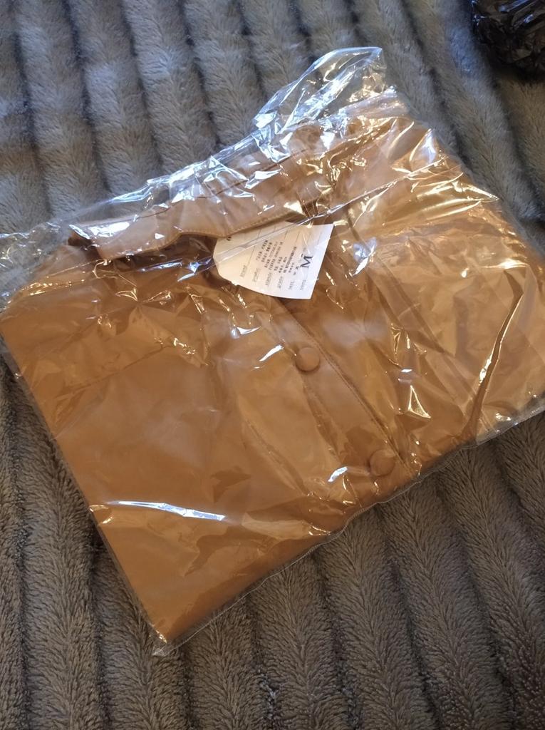 I wear size 48-50, the jacket is of good quality, the color is a soft medium between yellow and mustard. The packaging is of good quality, but I had to iron out the creases. But this is not critical.