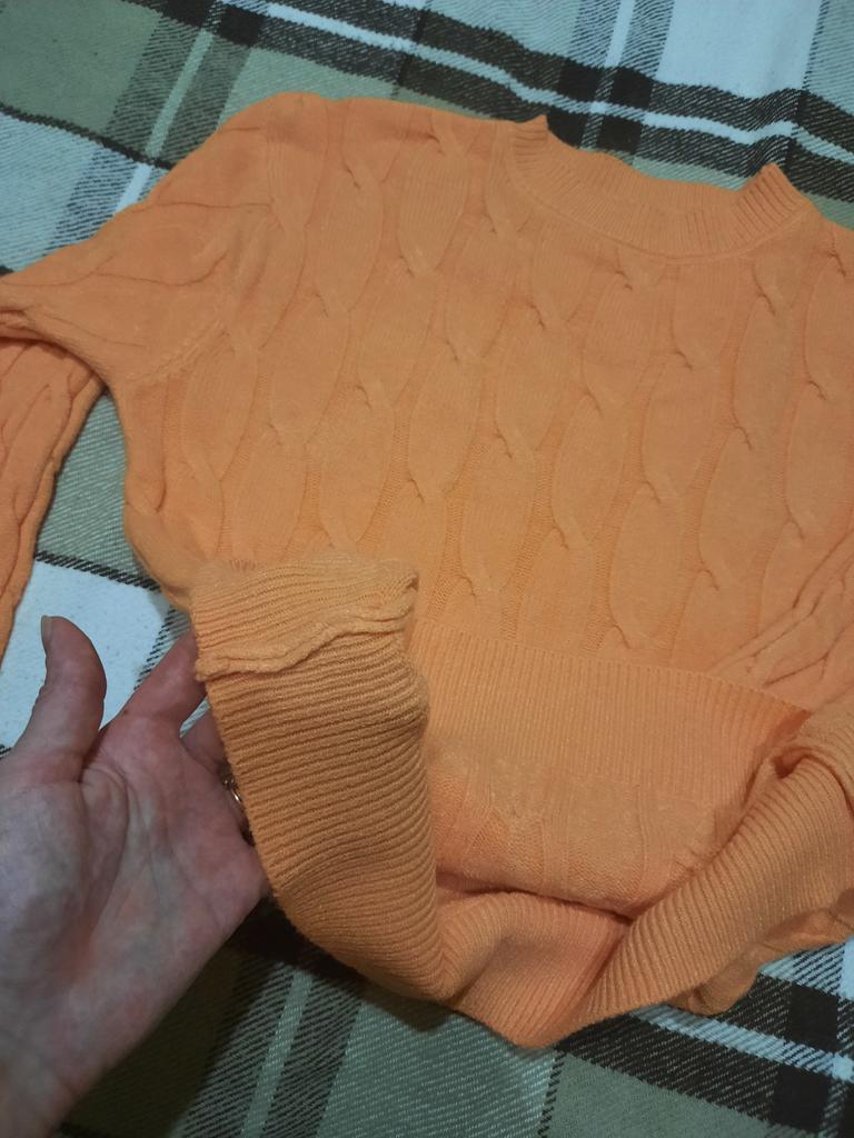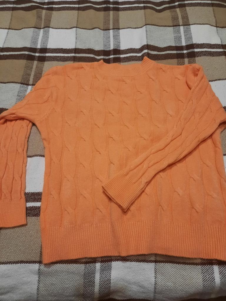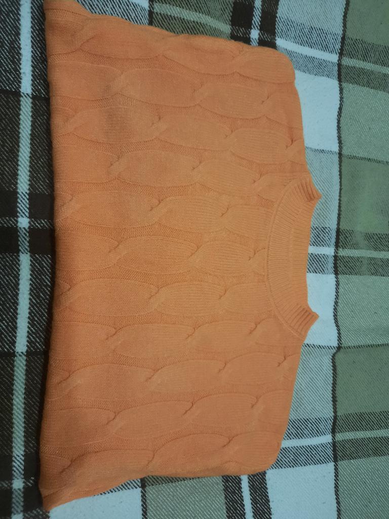 The sweater arrived with some orange stains that don't wash out. The appearance is not neat, as if the item is not new. Threads are sticking out. I don't recommend it