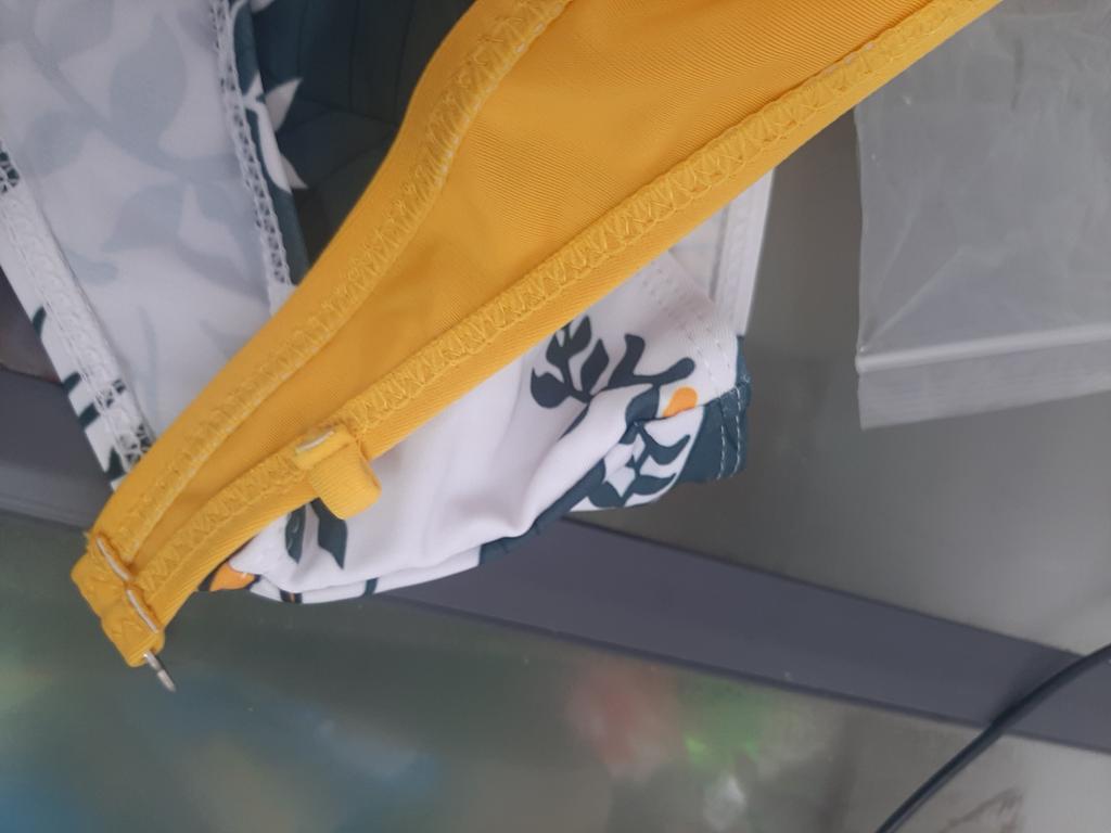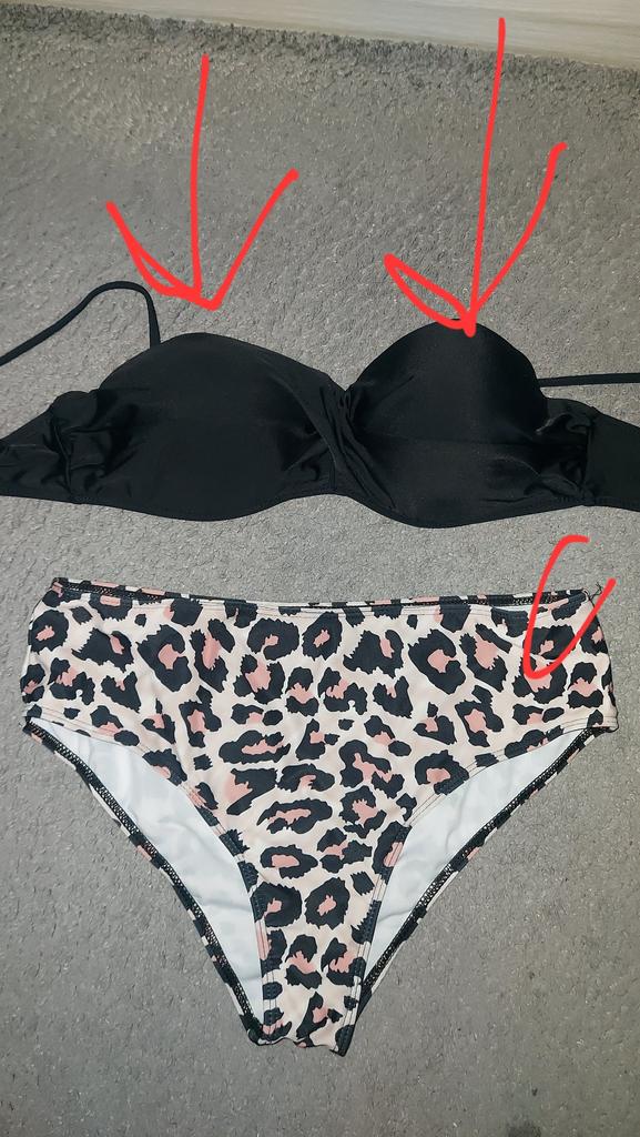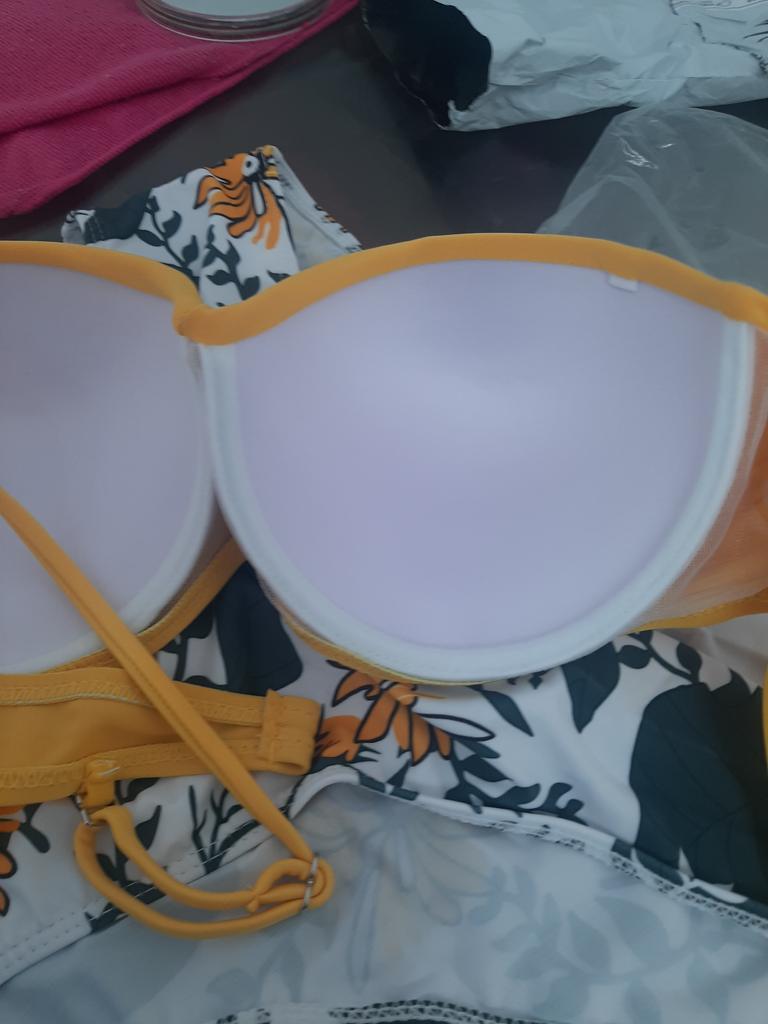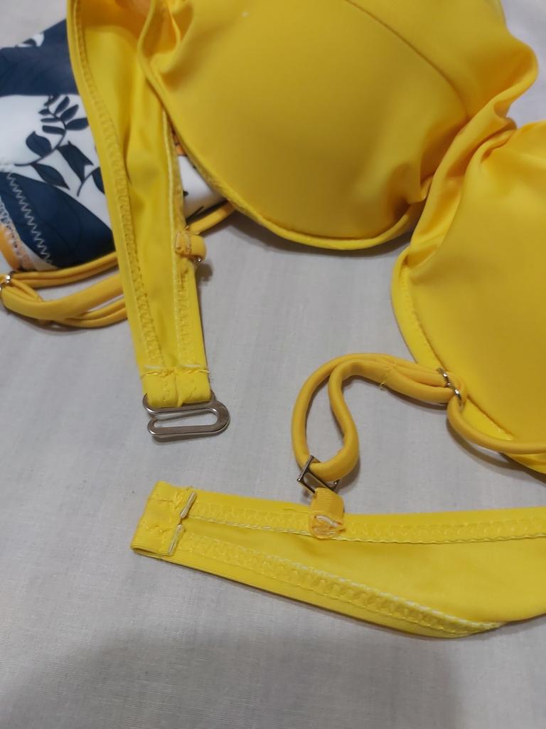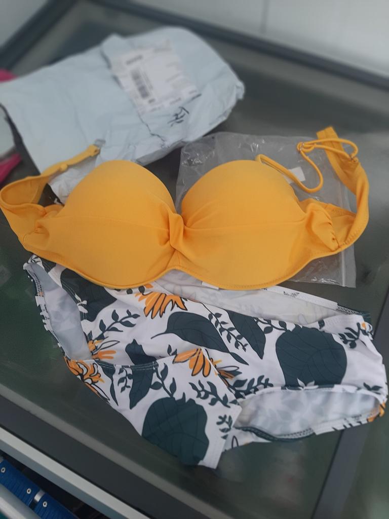 The top of the swimsuit does not match the size, the chest volume is suitable but the cups are very small, the swimming trunks correspond to the size, it is a shame that the size does not fit