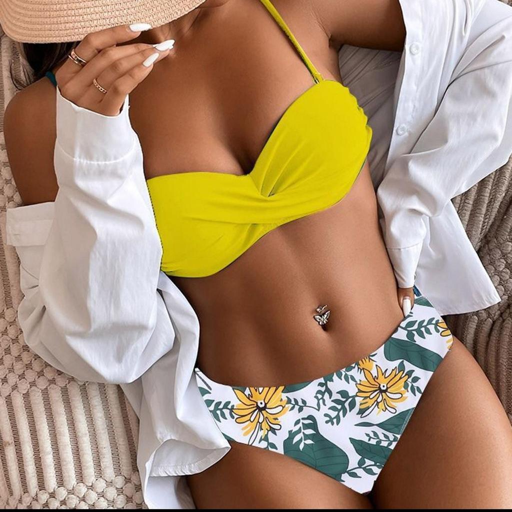 Sept Fashion Women's Sexy Split High Waist Sling Print Swimsuit Bikini