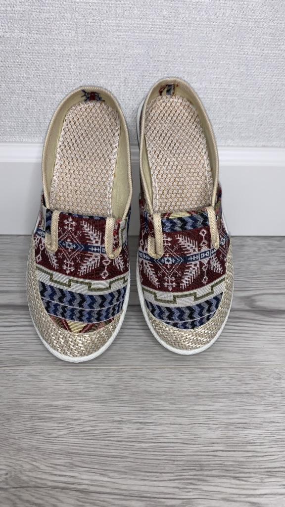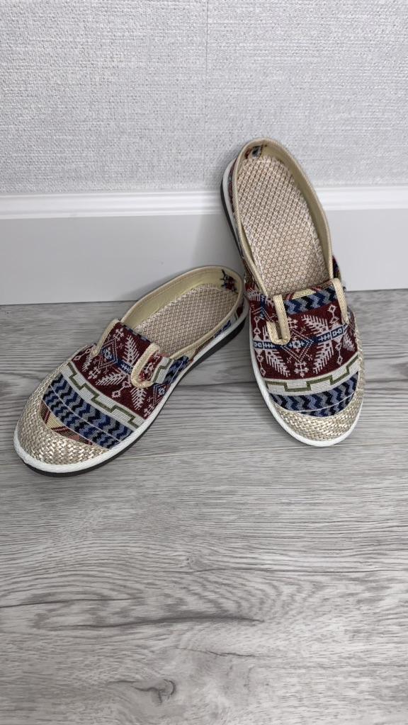 Order A Size Up Cloth Shoes Women's Linen Straw Woven Casual Shoes Student Mori Half Slipper Shoes Ethnic Style Embroidered Women's Shoes