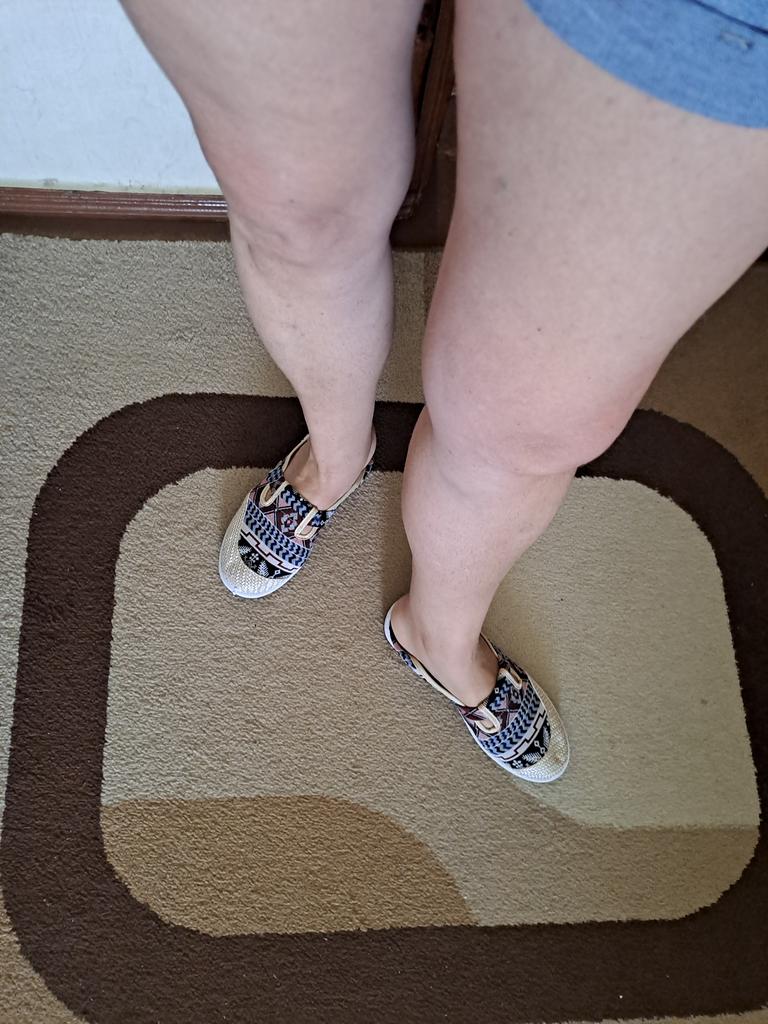 They look simpler than in the photo. Runs 1 size small. They are different from each other, the pattern does not match... Because of its brightness it is not immediately noticeable, but the impression is not the same ((((The backdrop is very small, it slides off... I just bent it under the heel. I expected better.