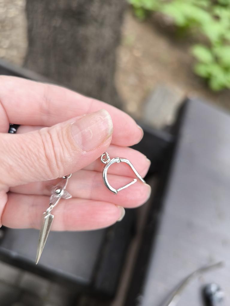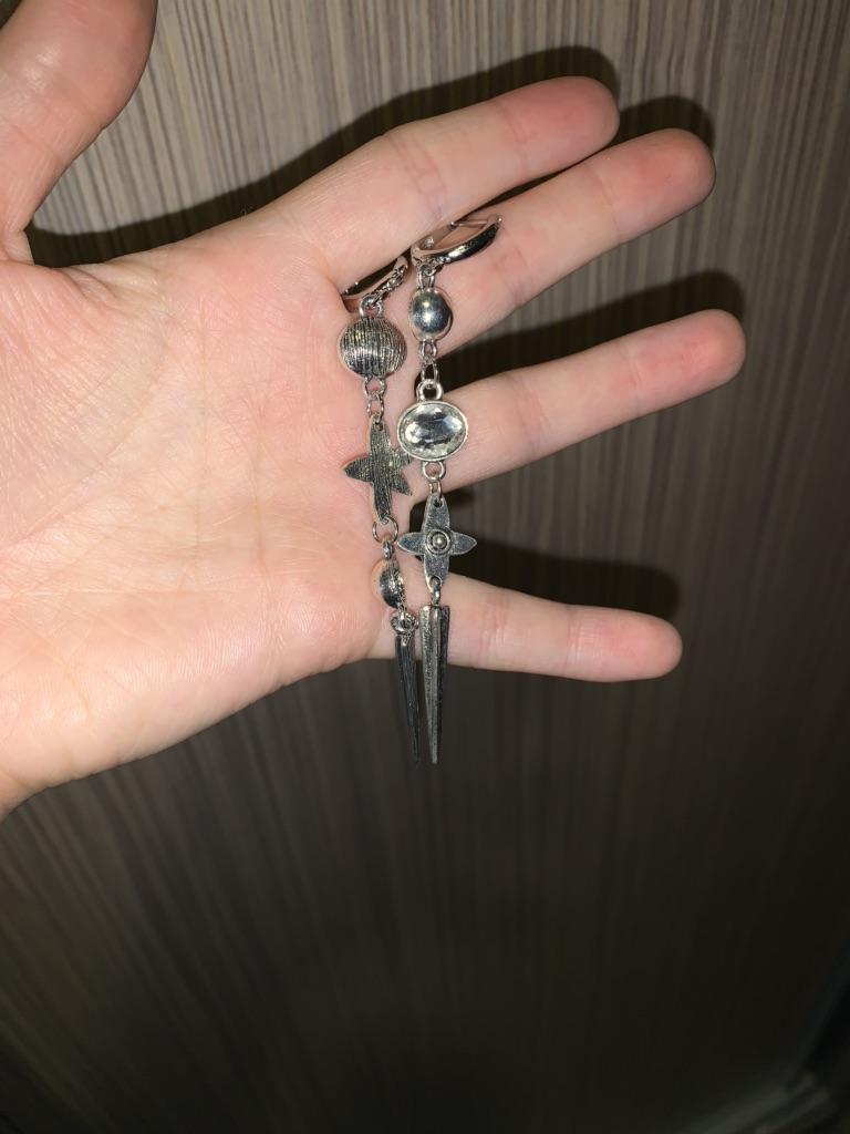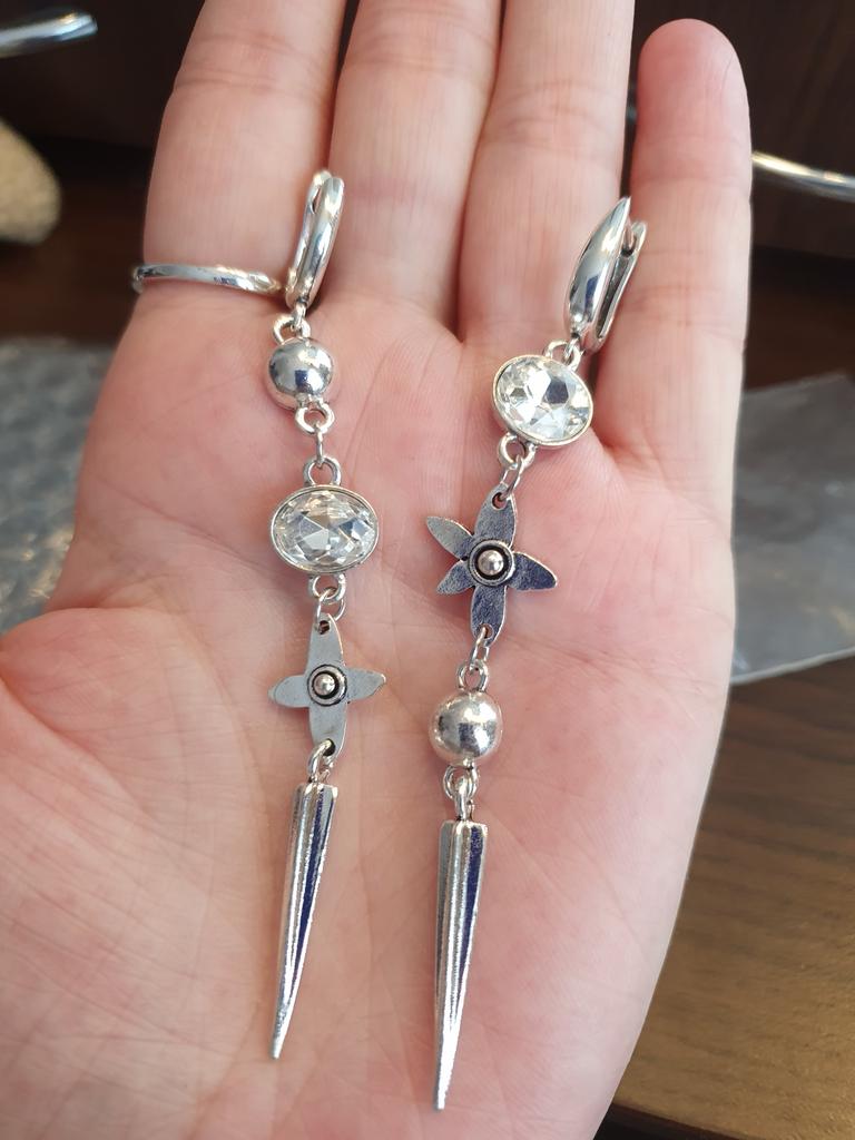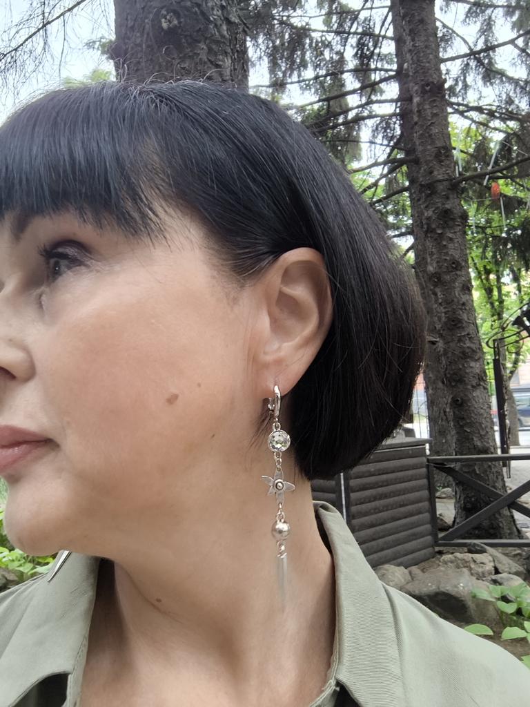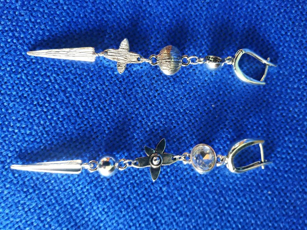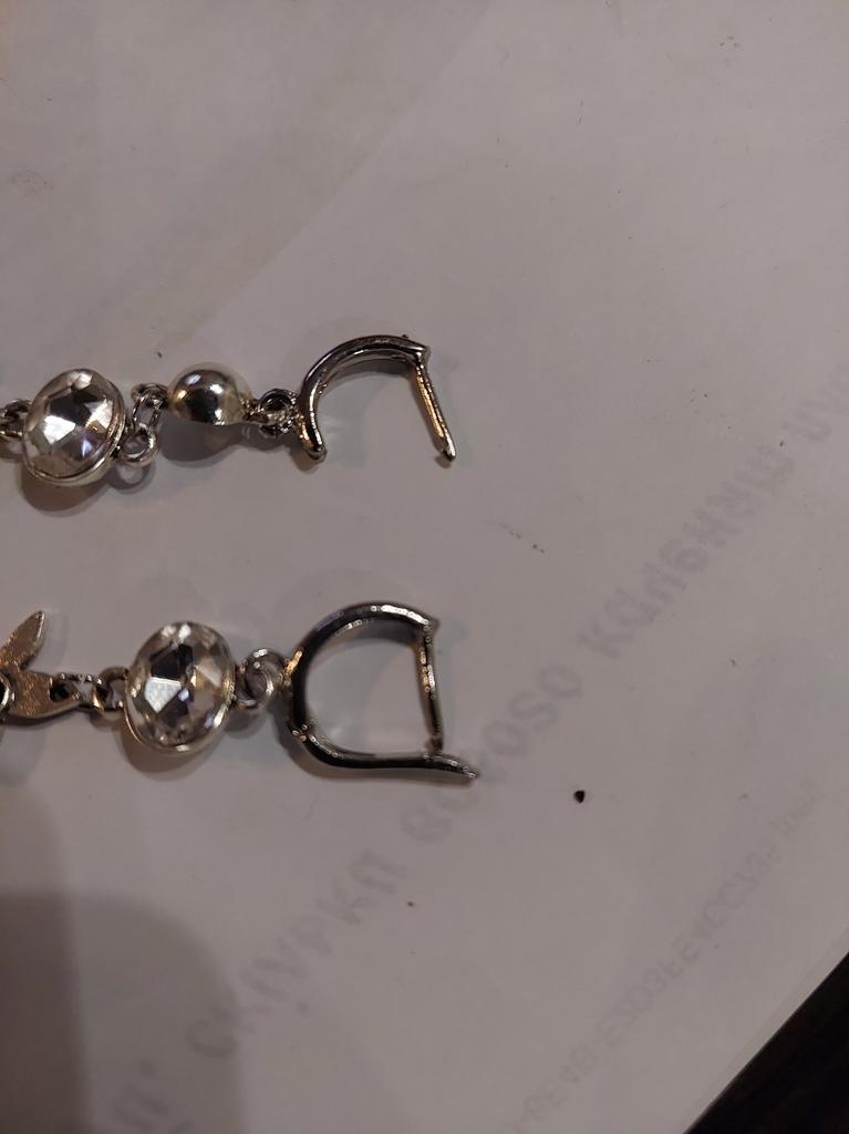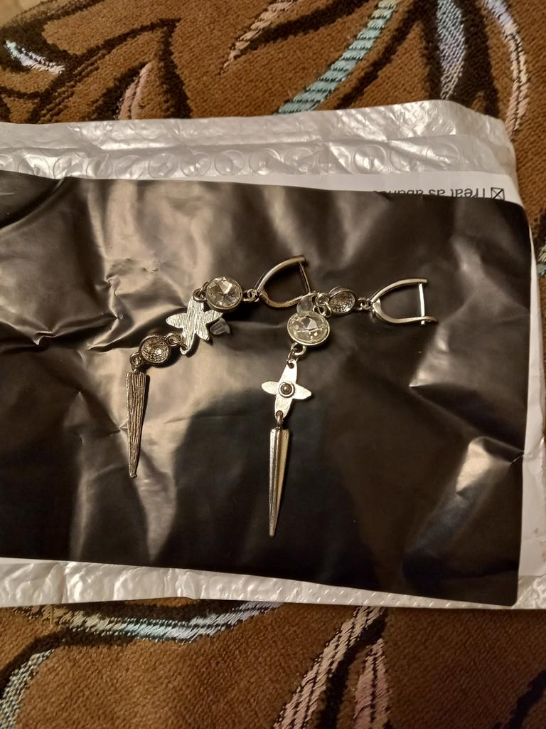 One earring is bent at the end, the second has a defective connecting ring. Beautiful, but not high quality