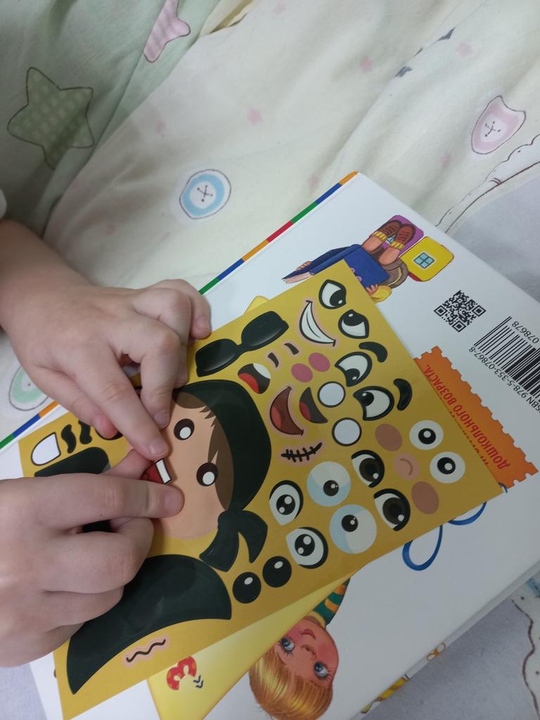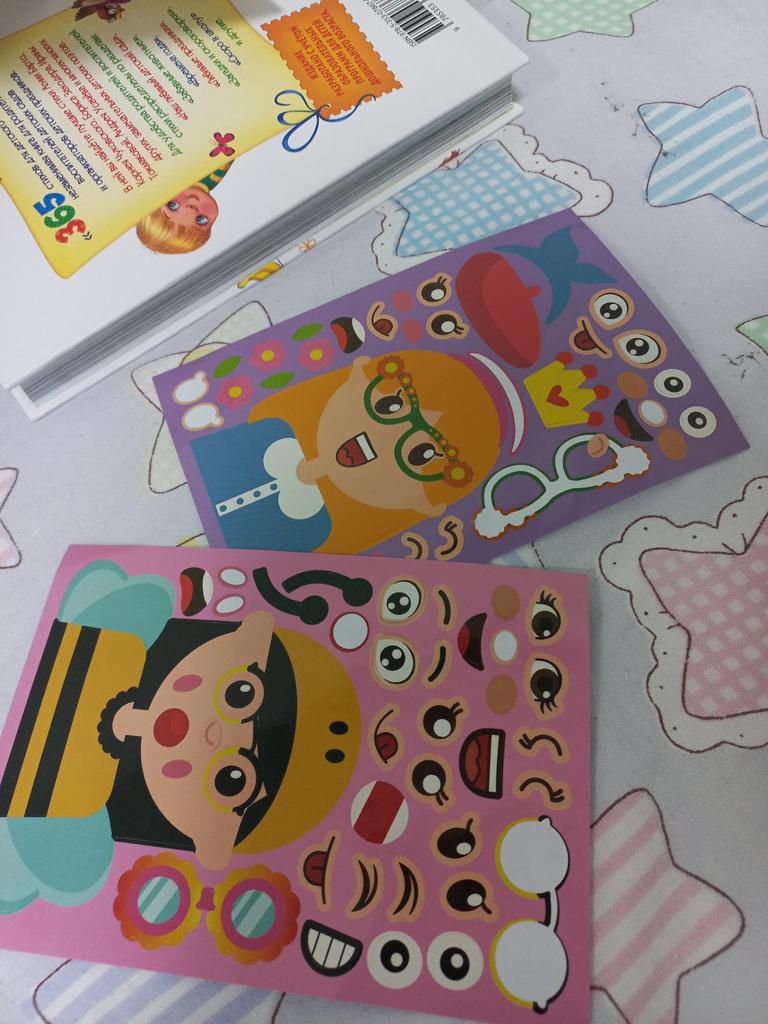 The game pleased the girl immensely. She was looking forward to it with anticipation. 8 sheets with stickers, you can create different states for the characters. Super.