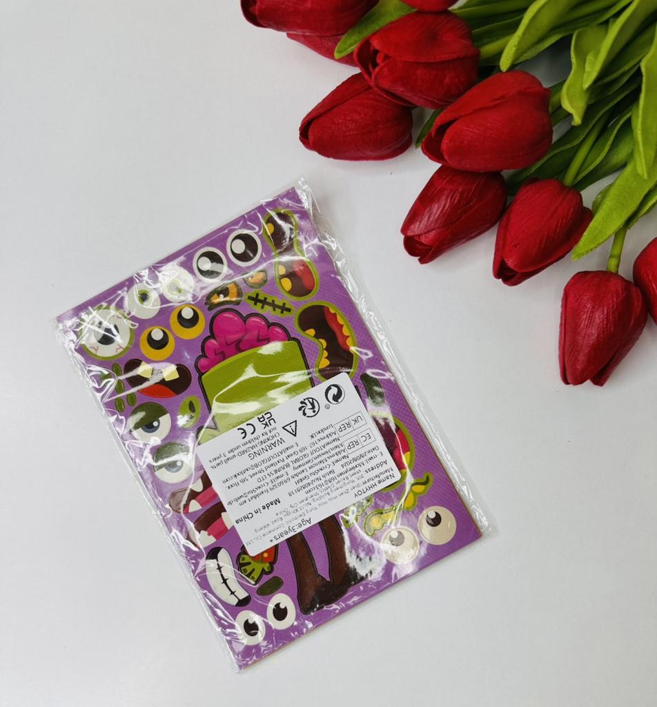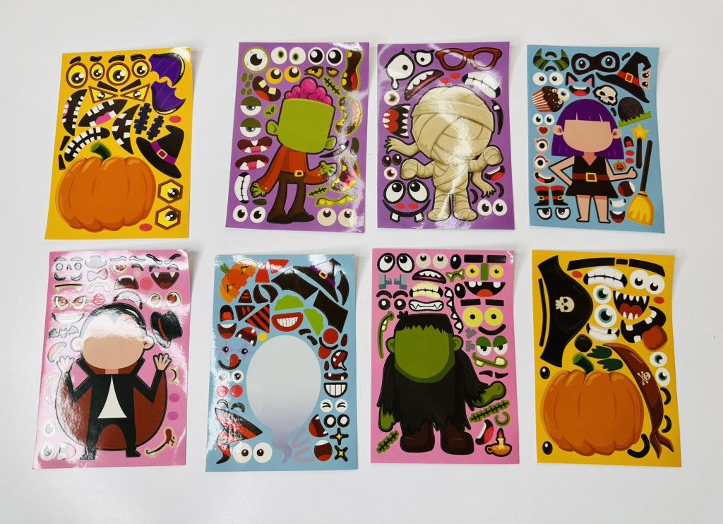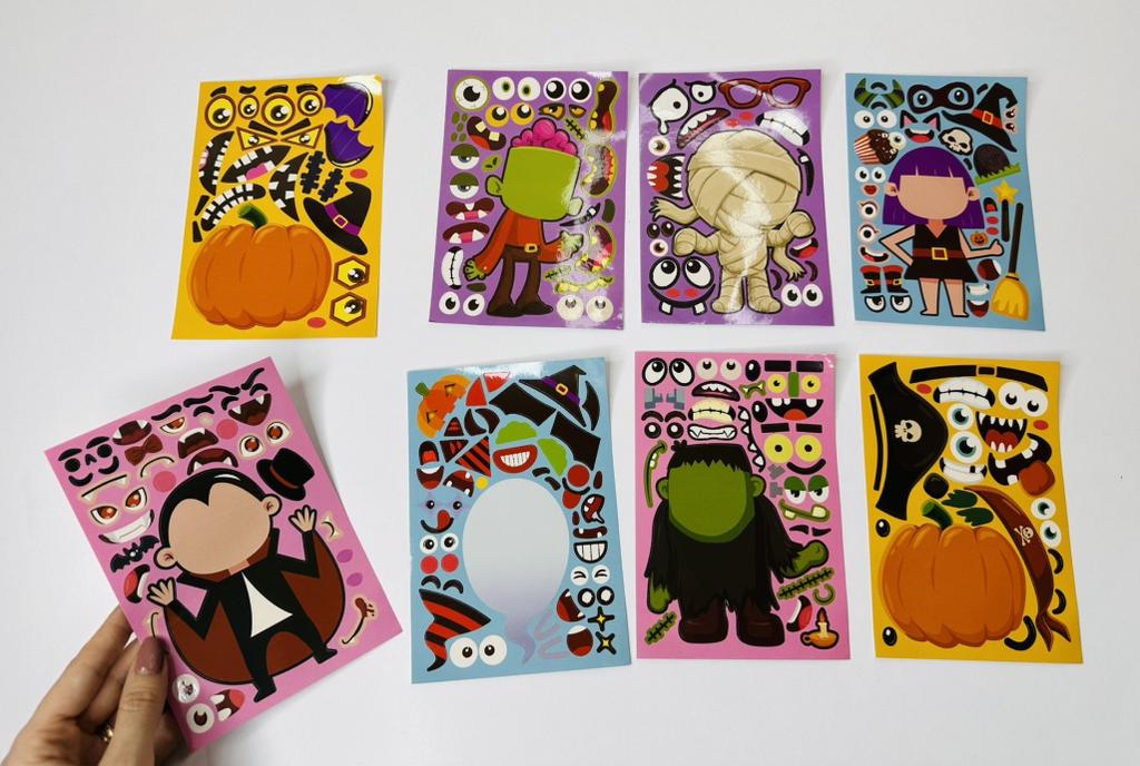 8 Sheets Puzzle Games Kids Stickers DIY Funny Make A Face Dinosaur Animal Monsters Cartoon Sticker Educational Toys