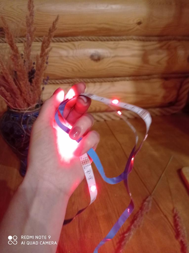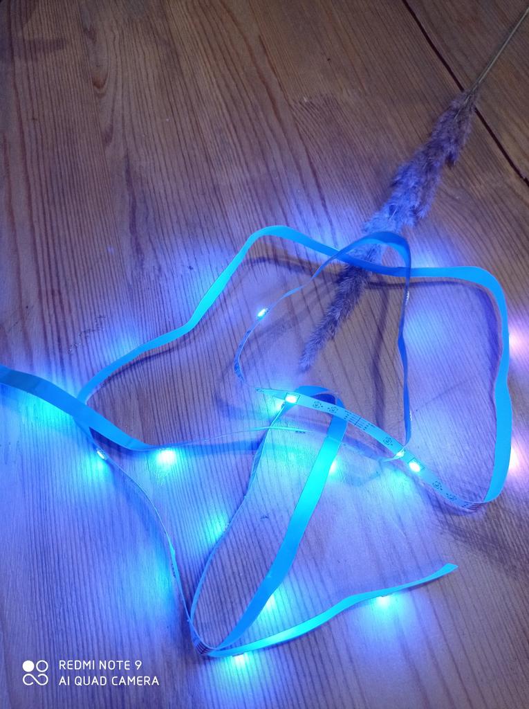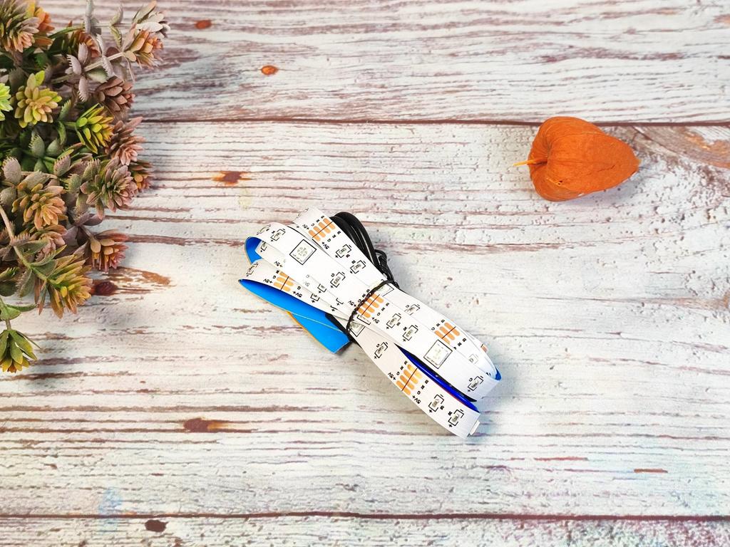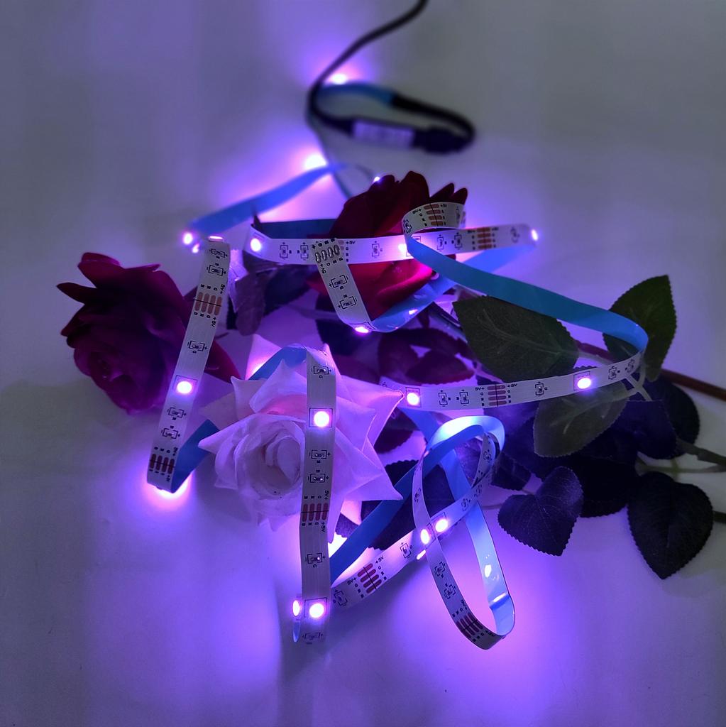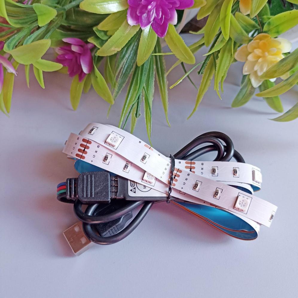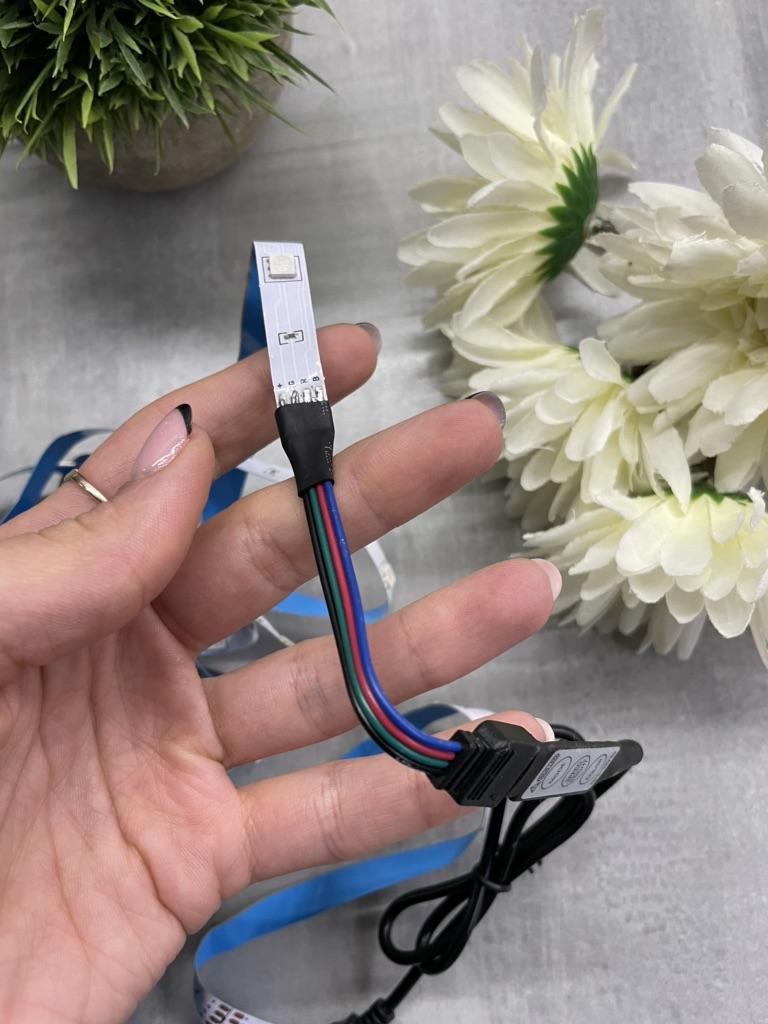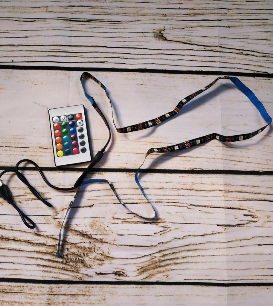 The LED strip is a flexible printed circuit board, on which there is a set of LEDs, current-regulating resistors and their communication lines. The product is intended for organizing decorative lighting and is not suitable as the only source of general lighting.. This LED strip belongs to the average consumer class of LED products, that is, it is designed for domestic use and installation by non-professional craftsmen. The tape has an adhesive backing, so it can be easily fixed on various surfaces.. The tape is powered via USB. Can be connected to a laptop TV or smartphone charger. The tape is controlled by a remote control (see photo).