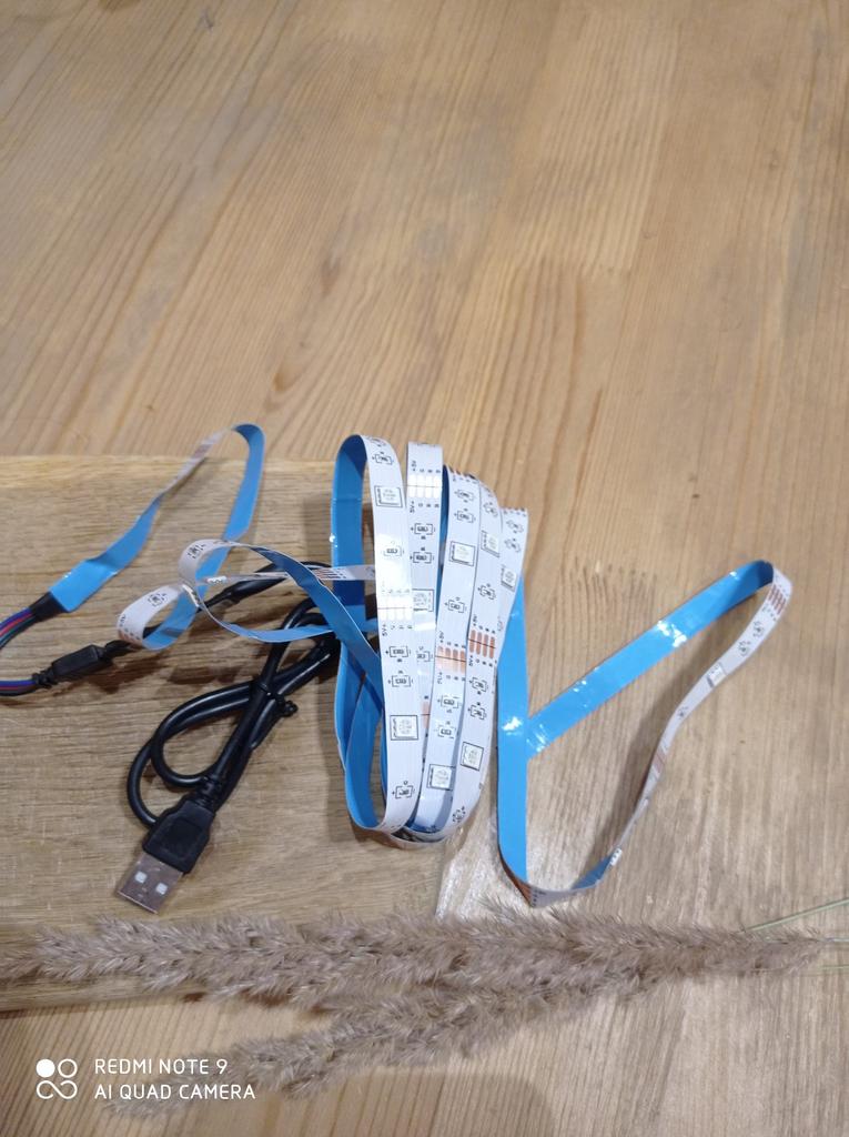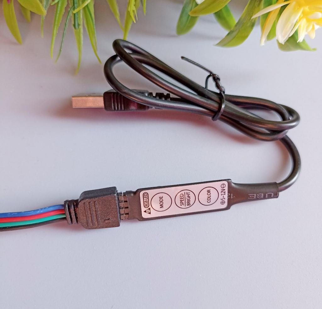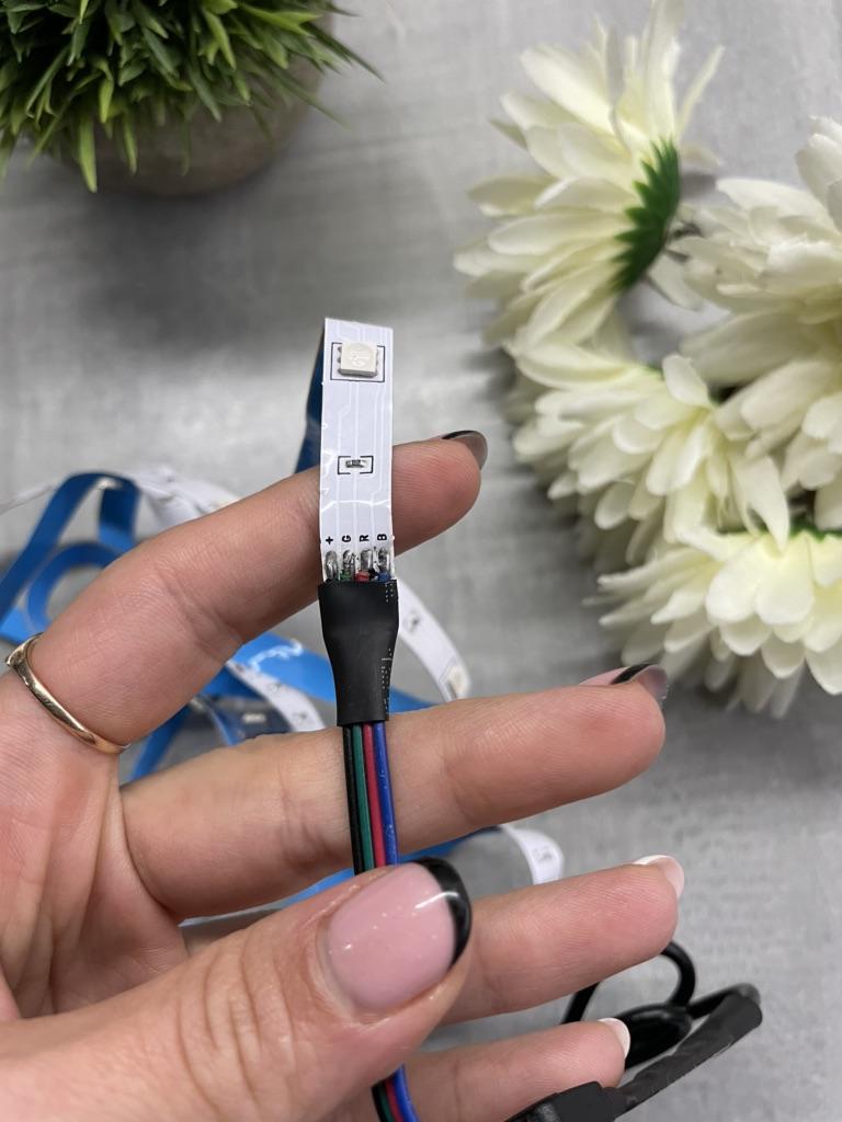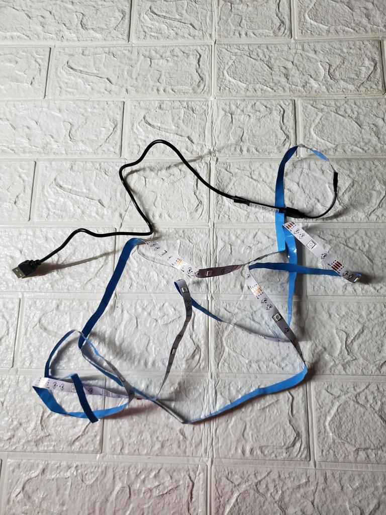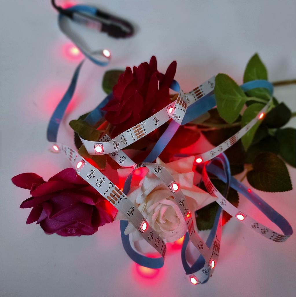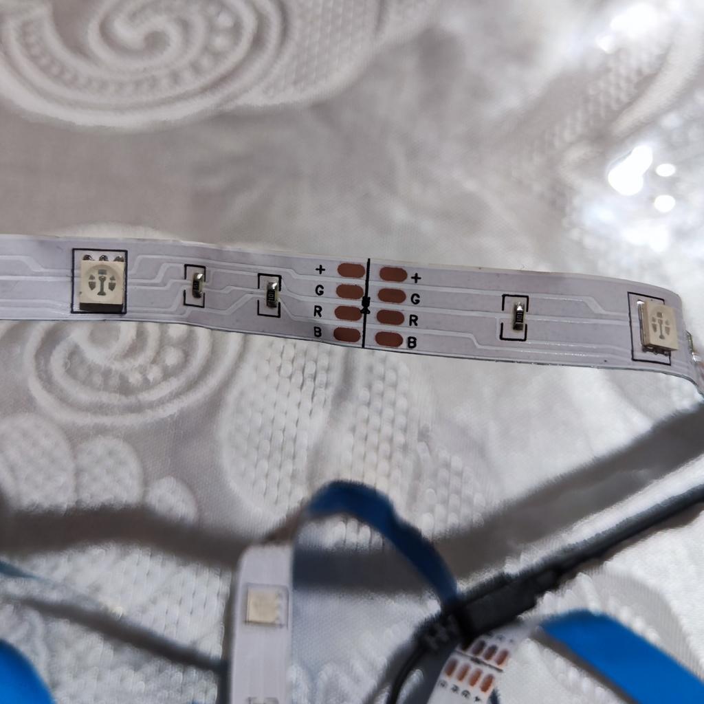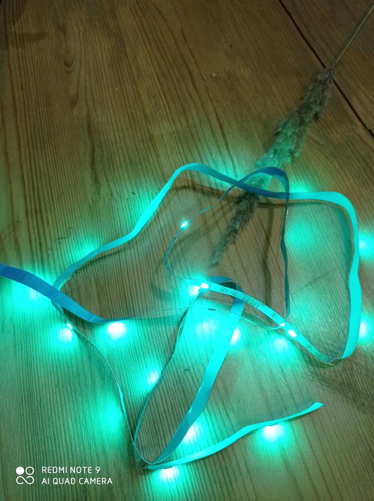 The LED strip is a flexible printed circuit board, on which there is a set of LEDs, current-regulating resistors and their communication lines. The product is intended for organizing decorative lighting and is not suitable as the only source of general lighting.. This LED strip belongs to the average consumer class of LED products, that is, it is designed for domestic use and installation by non-professional craftsmen. The tape has an adhesive backing, so it can be easily fixed on various surfaces.. The tape is powered via USB. Can be connected to a laptop TV or smartphone charger. The tape is controlled by a remote control (see photo).