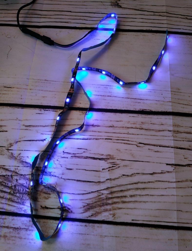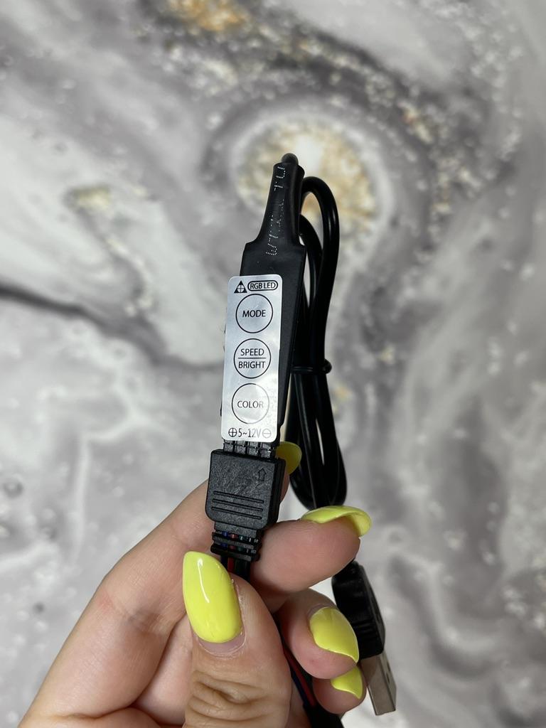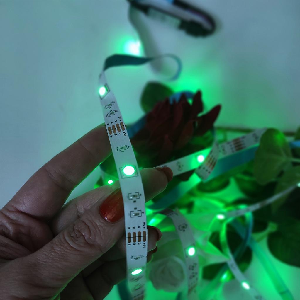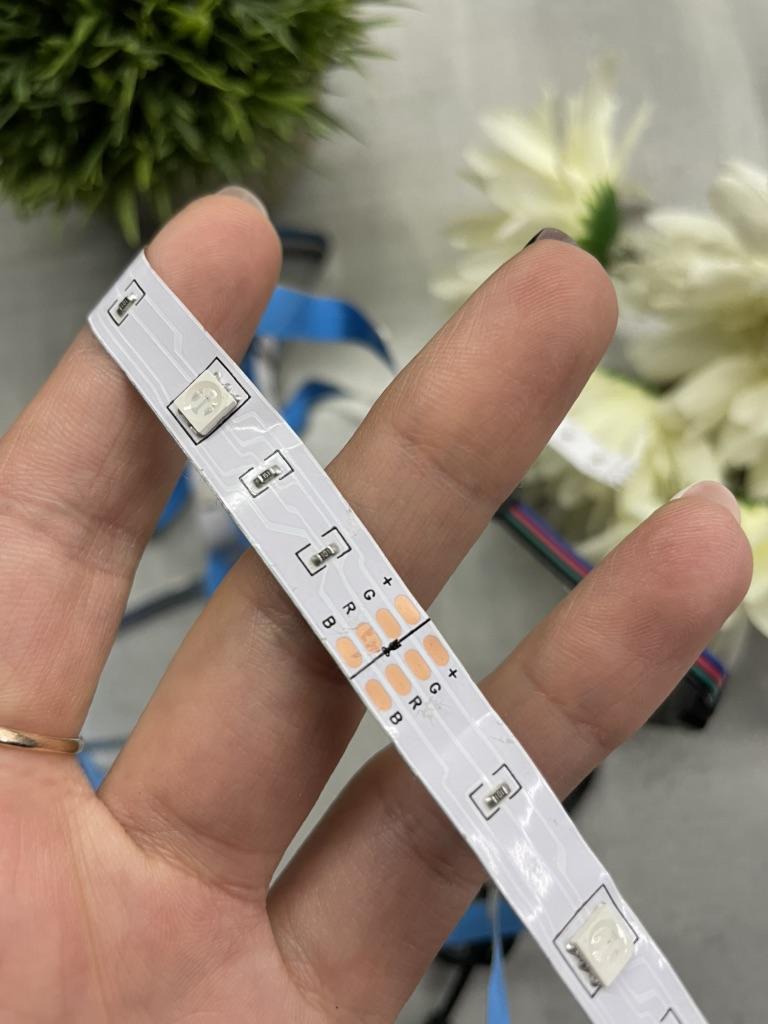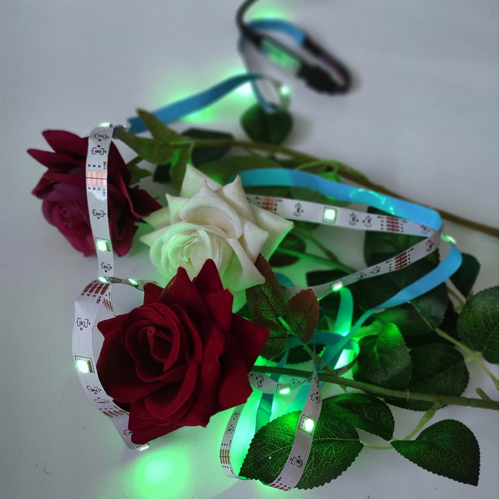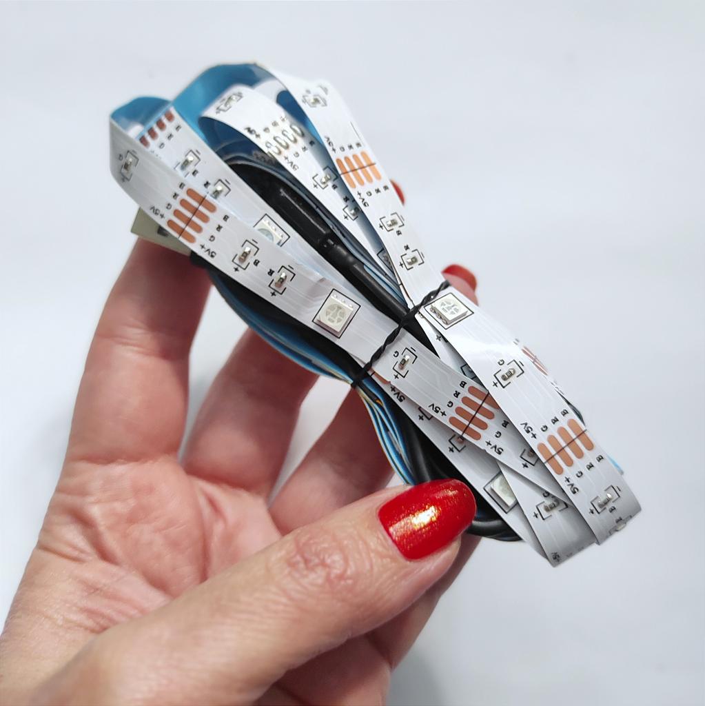 The LED strip is a flexible printed circuit board, on which there is a set of LEDs, current-regulating resistors and their communication lines. The product is intended for organizing decorative lighting and is not suitable as the only source of general lighting.. This LED strip belongs to the average consumer class of LED products, that is, it is designed for domestic use and installation by non-professional craftsmen. The tape has an adhesive backing, so it can be easily fixed on various surfaces.. The tape is powered via USB. Can be connected to a laptop TV or smartphone charger. The tape is controlled by a remote control (see photo).