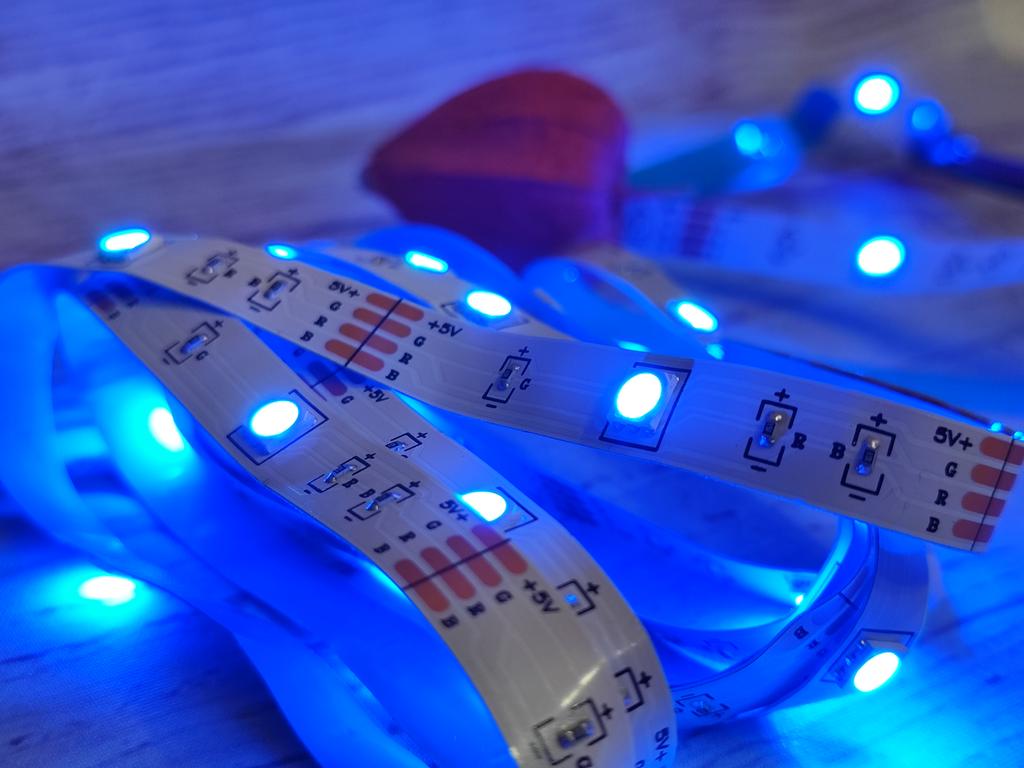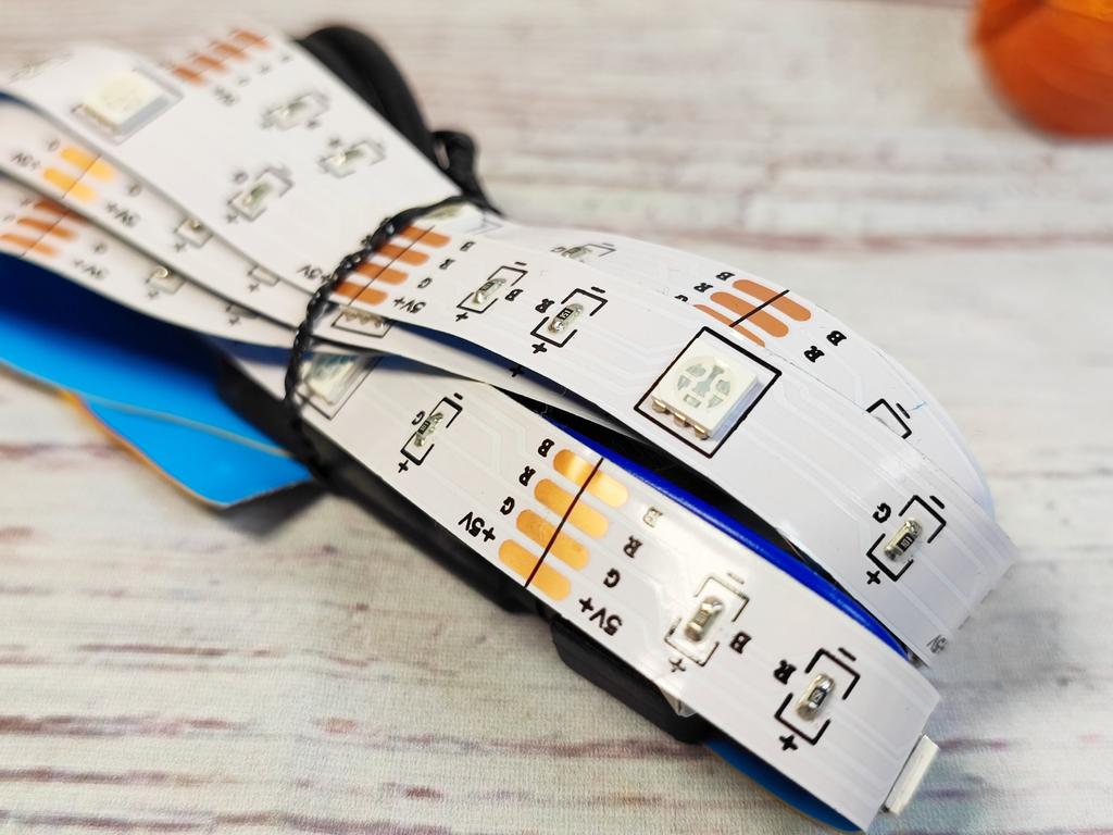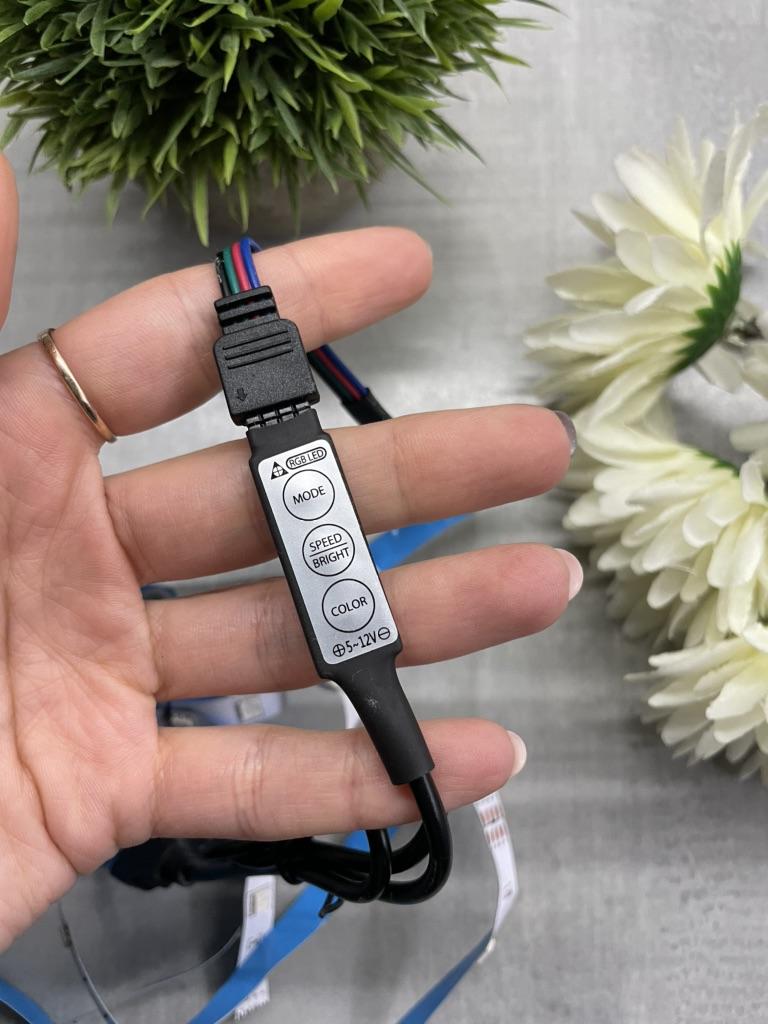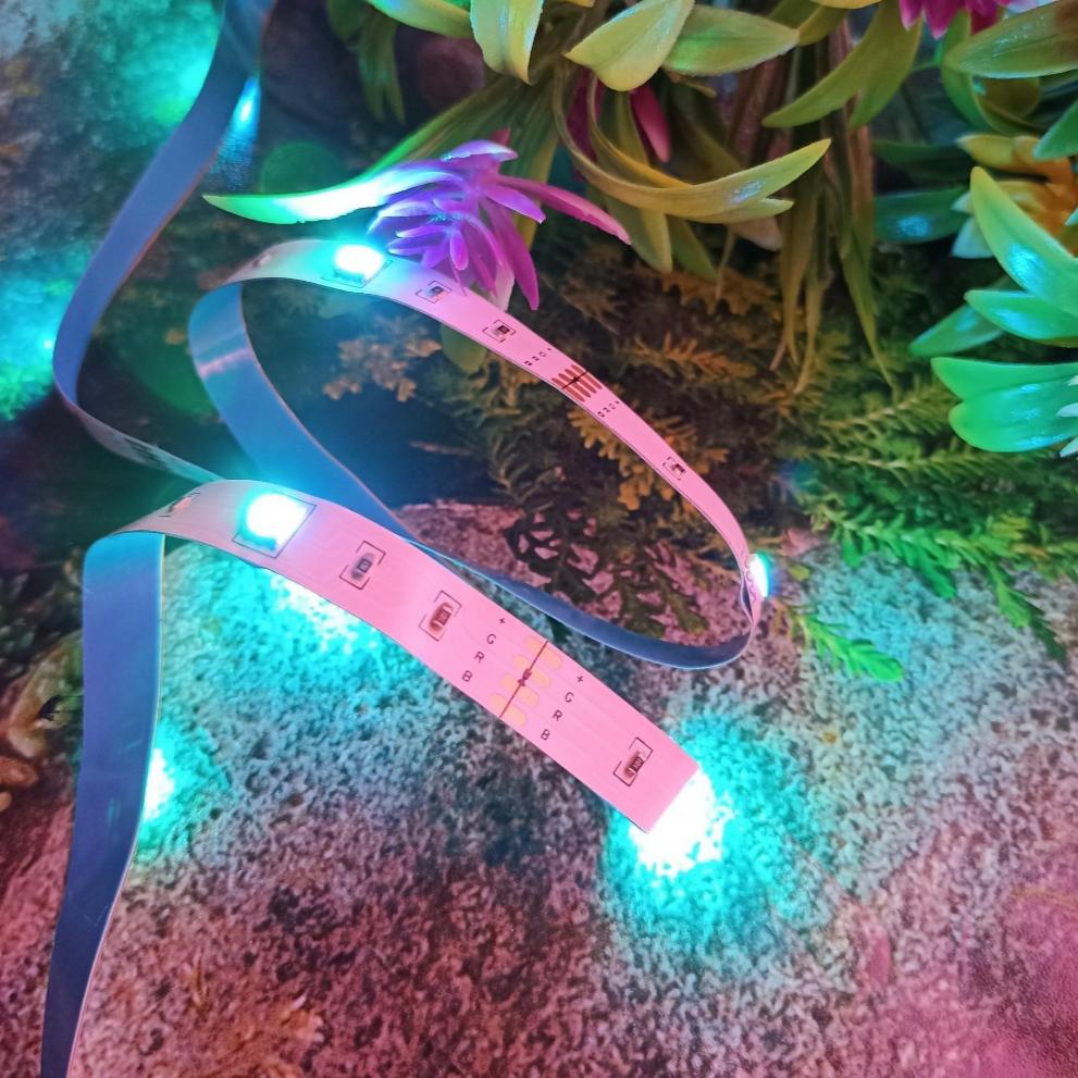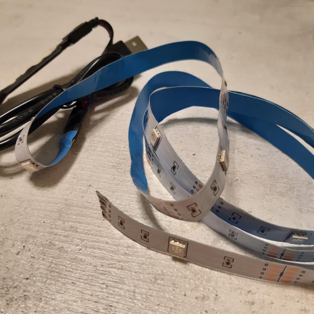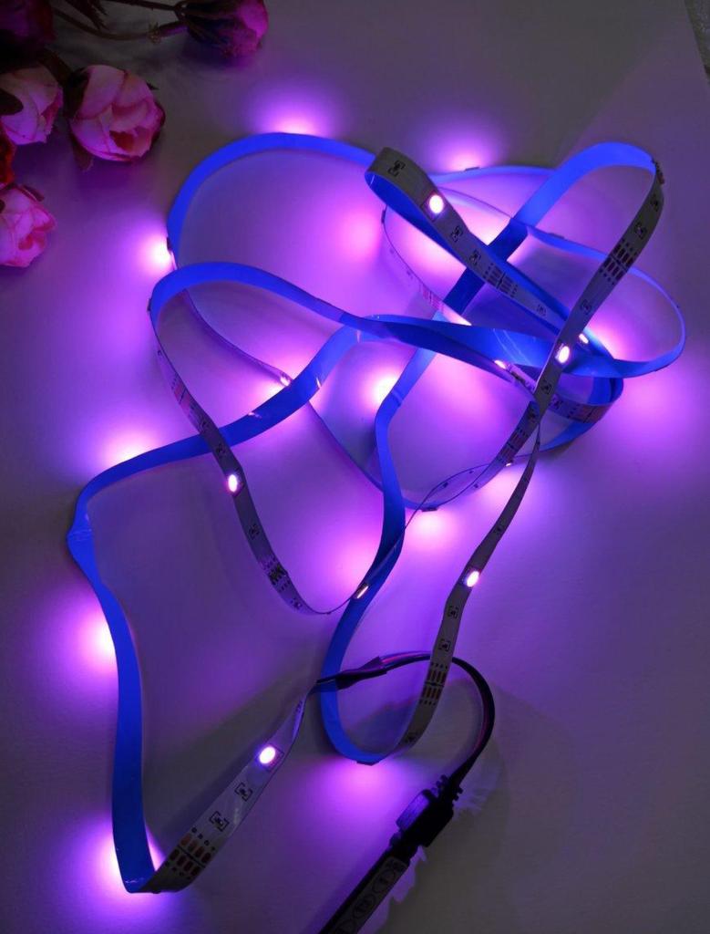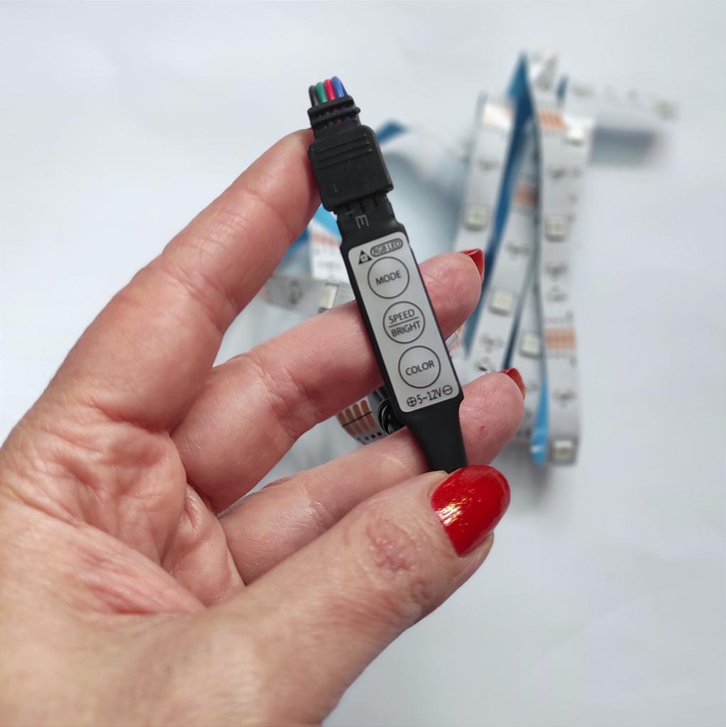 The LED strip is a flexible printed circuit board, on which there is a set of LEDs, current-regulating resistors and their communication lines. The product is intended for organizing decorative lighting and is not suitable as the only source of general lighting.. This LED strip belongs to the average consumer class of LED products, that is, it is designed for domestic use and installation by non-professional craftsmen. The tape has an adhesive backing, so it can be easily fixed on various surfaces.. The tape is powered via USB. Can be connected to a laptop TV or smartphone charger. The tape is controlled by a remote control (see photo).