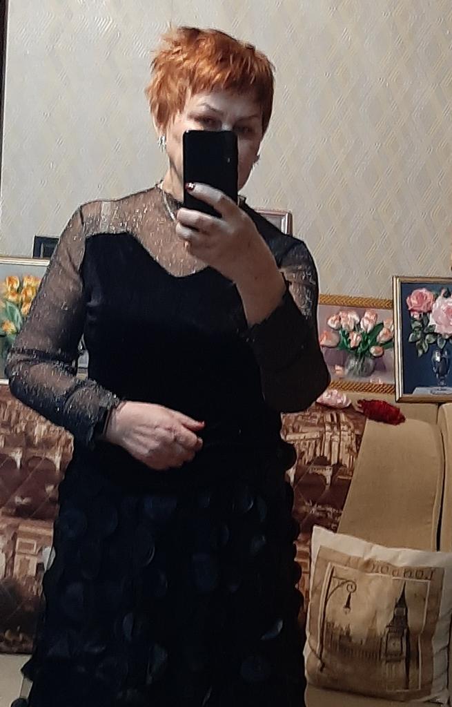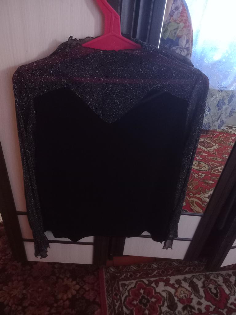 XXL for size 48-50 is good. The neckline is higher, not like in the photo. But overall the blouse is good. There are no obvious shortcomings. Looks elegant. The fabric with lurex does not scratch the skin, it is quite soft, although I am very sensitive. I recommend.