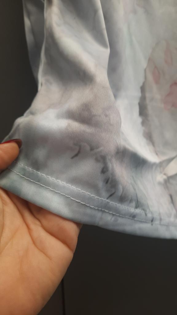 The blouse is beautiful, but a little small. And the flounce on the sleeve was so disappointing - it’s not there, there’s just an elastic band inserted, but there’s no sign of it.