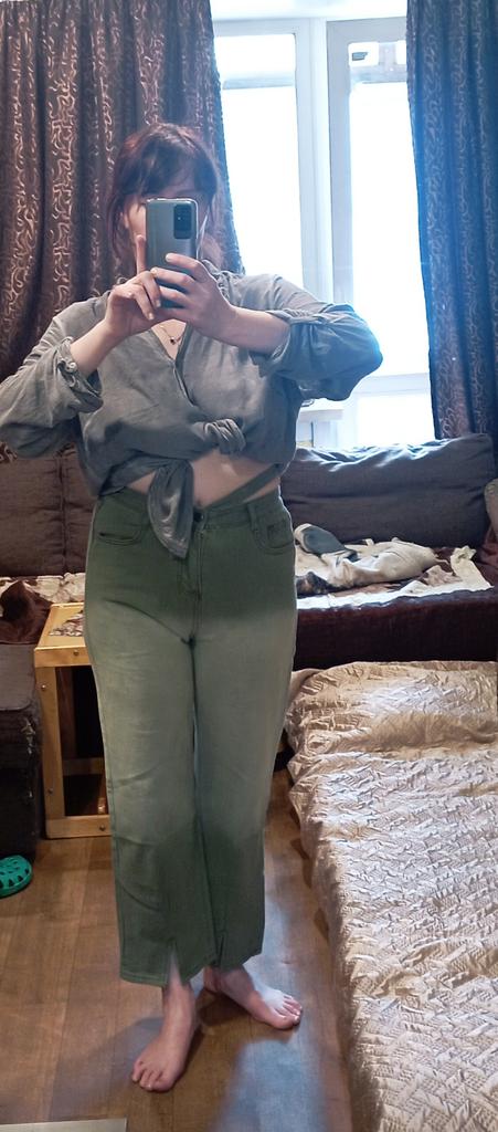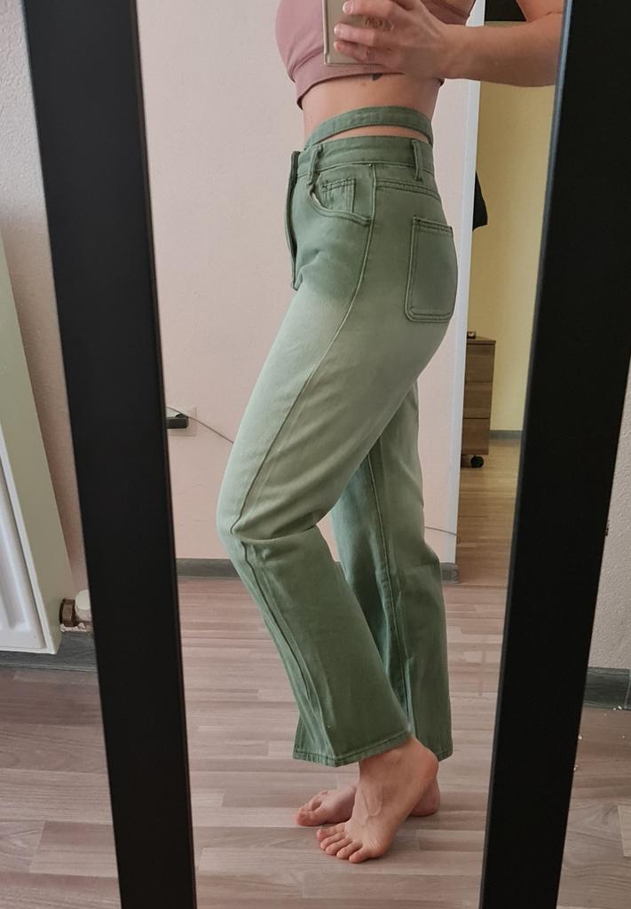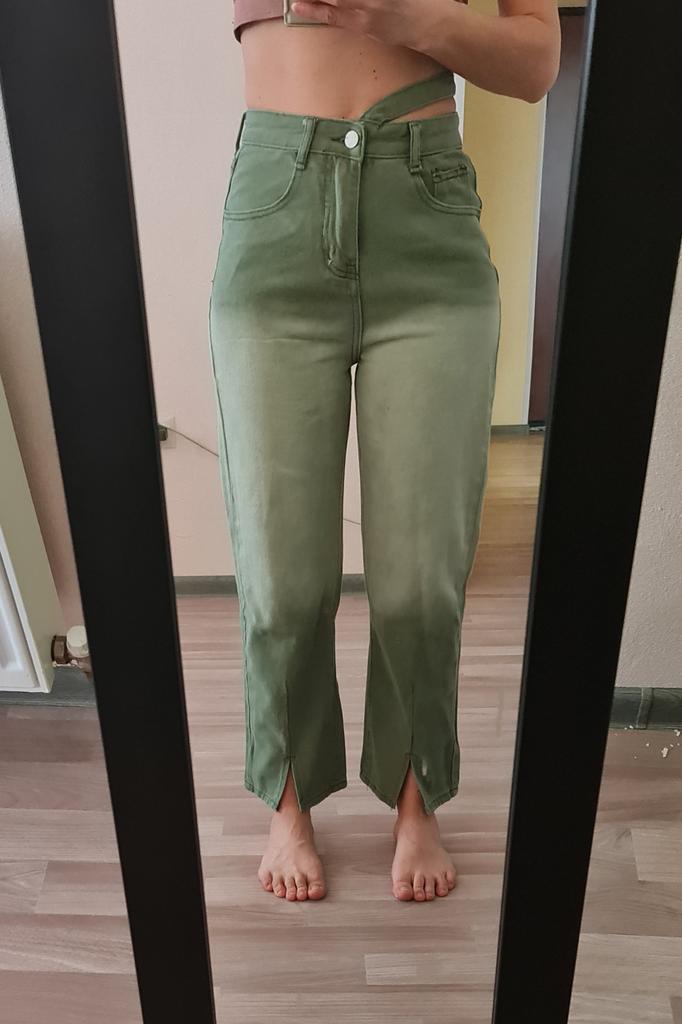 2022 Womens Fashion High Waist Split Up Green Women's Wide Leg Jeans Baggy Woman Denim Capris Pants Jean Mom Jeans Trousers