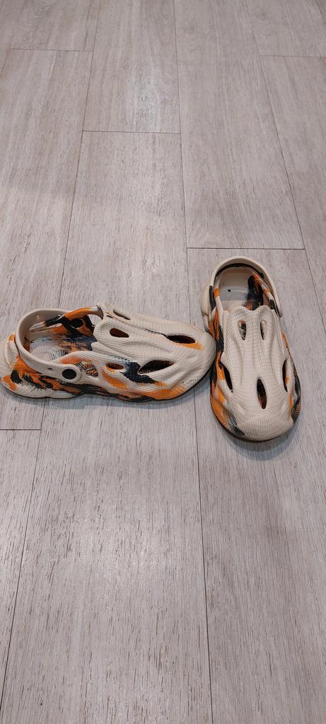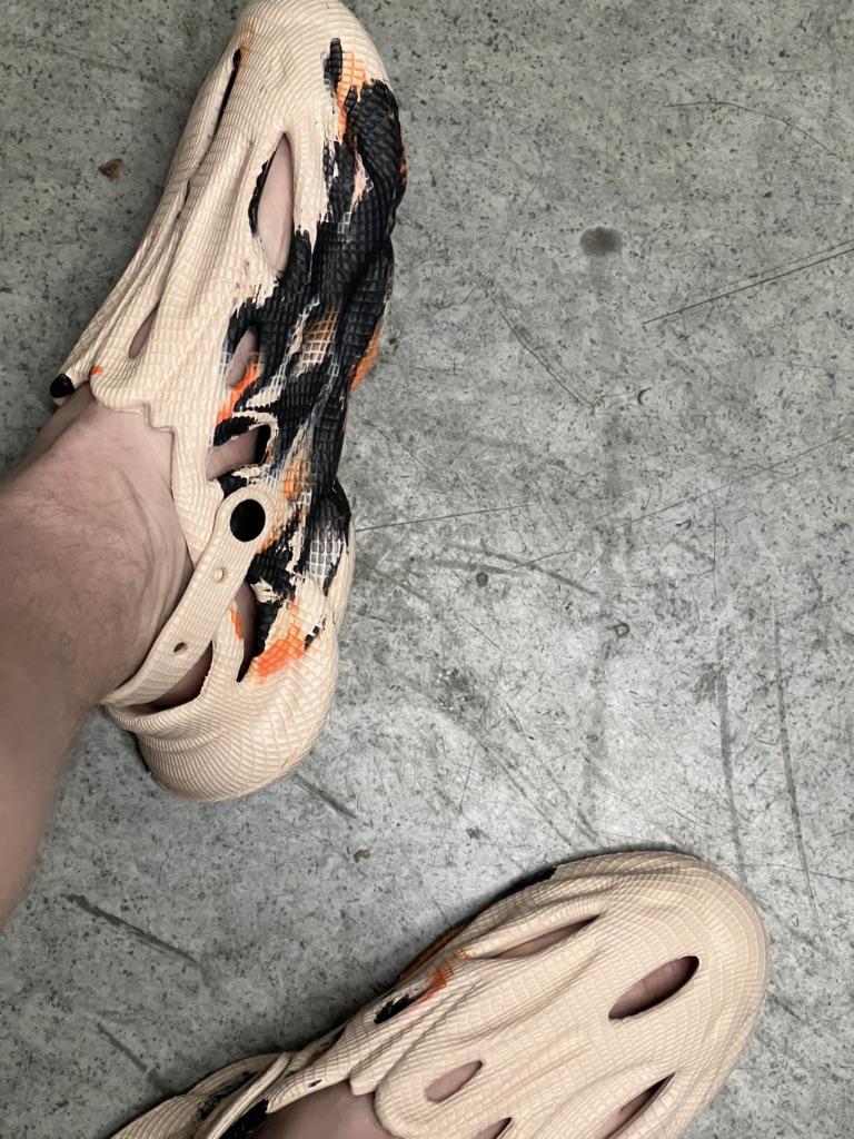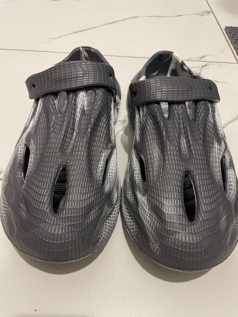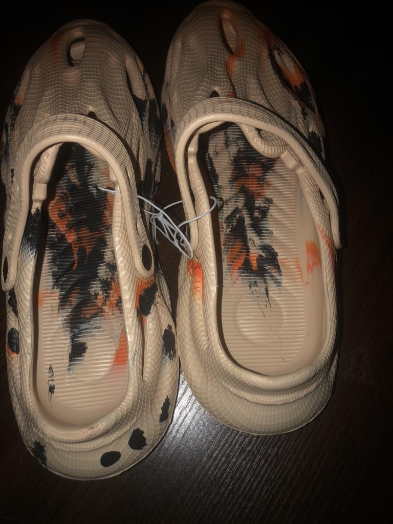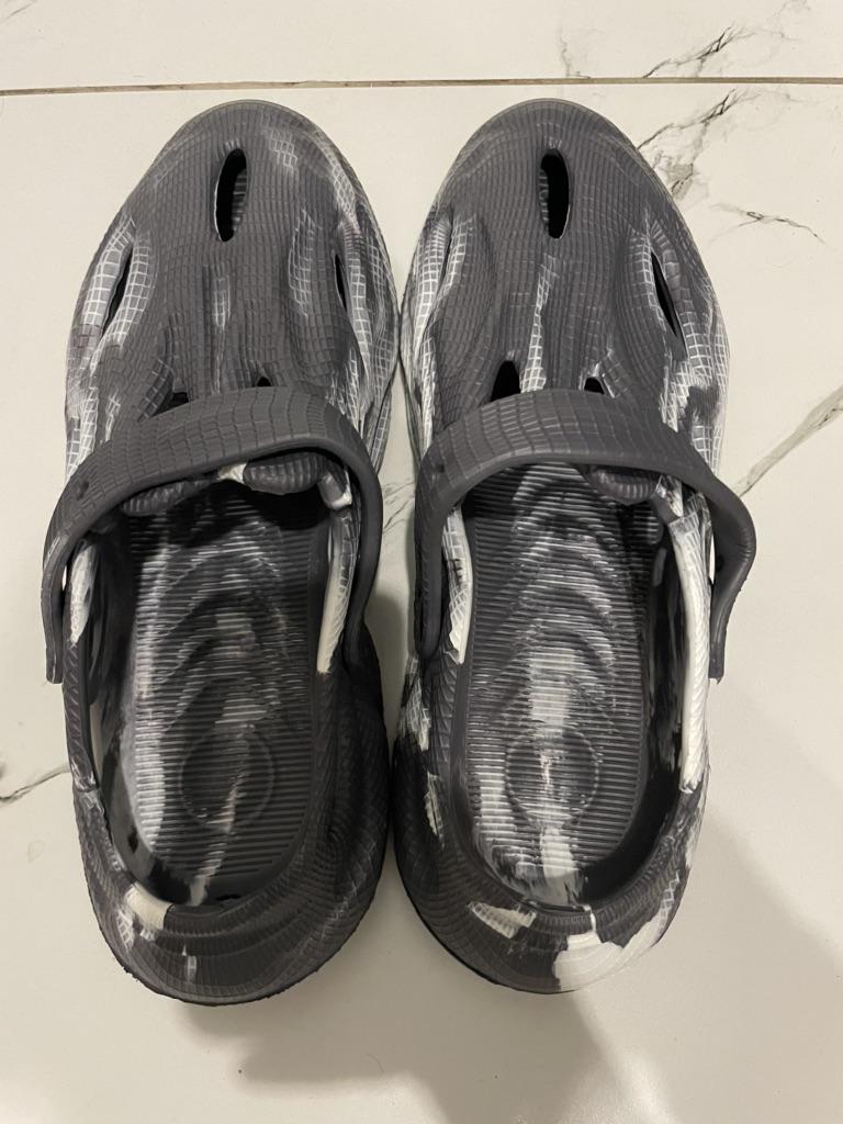 We took size 41, 42 fit. Walking around the house in them makes your feet sweat a lot. I think they will be great outside.
