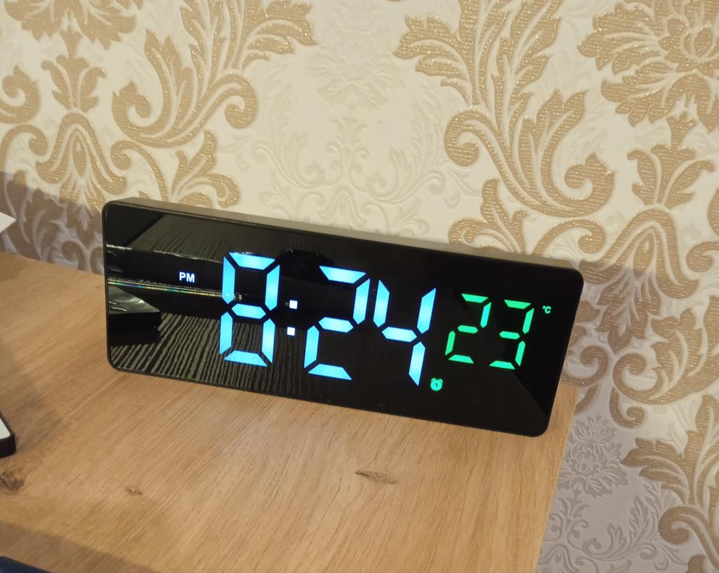 Digital Alarm Clock Voice Control Snooze Time Temperature Display 3 Alarms Reloj Despertador Mirror LED Clock with USB Cable