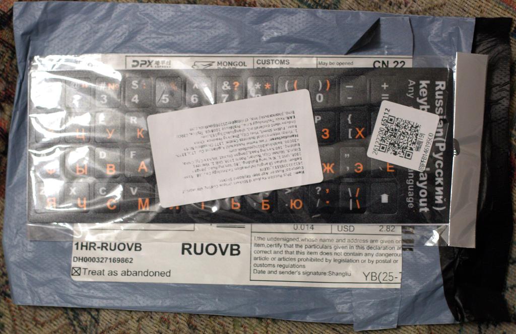 Пришло не быстро конечно же, Дата заказа 22 января, получения 16 февраля. Немного до месяца не дотянули. Ну да Бог с ними. По нынешним временам это стало нормой и условия им поменяли. Начался переток товара на ОЗОН и т.п. В общем-то был уже опыт покупки таких наклеек, да ещё и с флюоресцентным свечением в темноте, у другого продавца года полтора назад. Надпись на паре кнопок стёрлась. Были попытки маркером написать, процарапать и краской заполнить выемку. Все оказалось не то что надо. Решил-таки после этого попробовать увиденные в сети подобные наклейки налепить. понадеялся что наклейка позволит решить этот момент. К сожалению, выяснилось в процессе эксплуатации, что надписи с наклеек стираются ещё быстрее чем с самих копок. Заказал на смену тем эти. Но пока шли. у клавы резинка под кнопкой накрылась, она опустилась вниз и запала. В итоге пошёл-таки по пути покупки на ОЗОНе новой. Так как там и быстро и по цене теперь зачастую даже дешевле выходит. Мало того и сами китайские продавцы. судя по тем же семенам (там у себя уже видать после нередкого обмана с семенами, обиделись и у них там перестали покупать. Решили видать что тут подумают что это местный продавец, которому привыкли уже доверять и продолжат покупать и дальше. На первых порах похоже оправдалось такое ожидание. Но теперь и тут просекли кто продавец. масса негативных отзывов опять посыпалась что под видом оного продают х знает что, порой траву откровенную, пользуясь что результат не скоро увидят. Пригляделись и узрели кто это на самом деле их и откуда продаём. К счастью это только этой разновидности товара коснулось в основном. Нажали у нас на верху кормящиеся от торговли на бедных китайцев. Не понравилось что у нас цену в 2 раза привыкли накручивать. от чего они и кормились, а от них нормальная цена шла. народ перетёк туда. перестав у себя глистов кормить. Не понравилось им это и стали они доступными им рычагами вместо честной конкуренции, конкурента задавливать. Пришлось китайцам приспосабливаться. Вероятно тут склады поотрывали и уже отсюда товар доставляют, через тот же ОЗОН. Сохранив не отпугивающие цены и доставка стала зачастую на следующий же день. Ну и глистам по-прежнему копеечка продолжает падать. Тоже не в обиде остались. Ничего не вкладывая. на халяву продолжили получать.