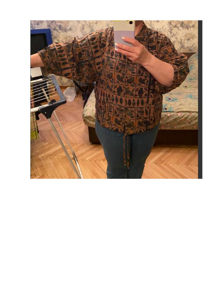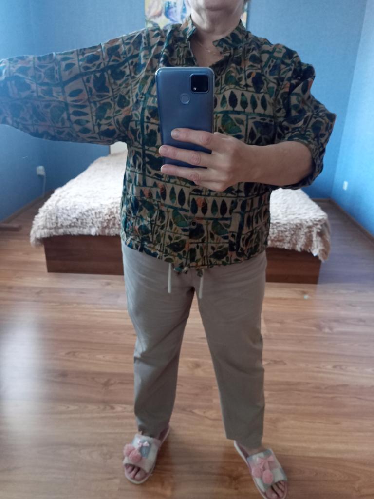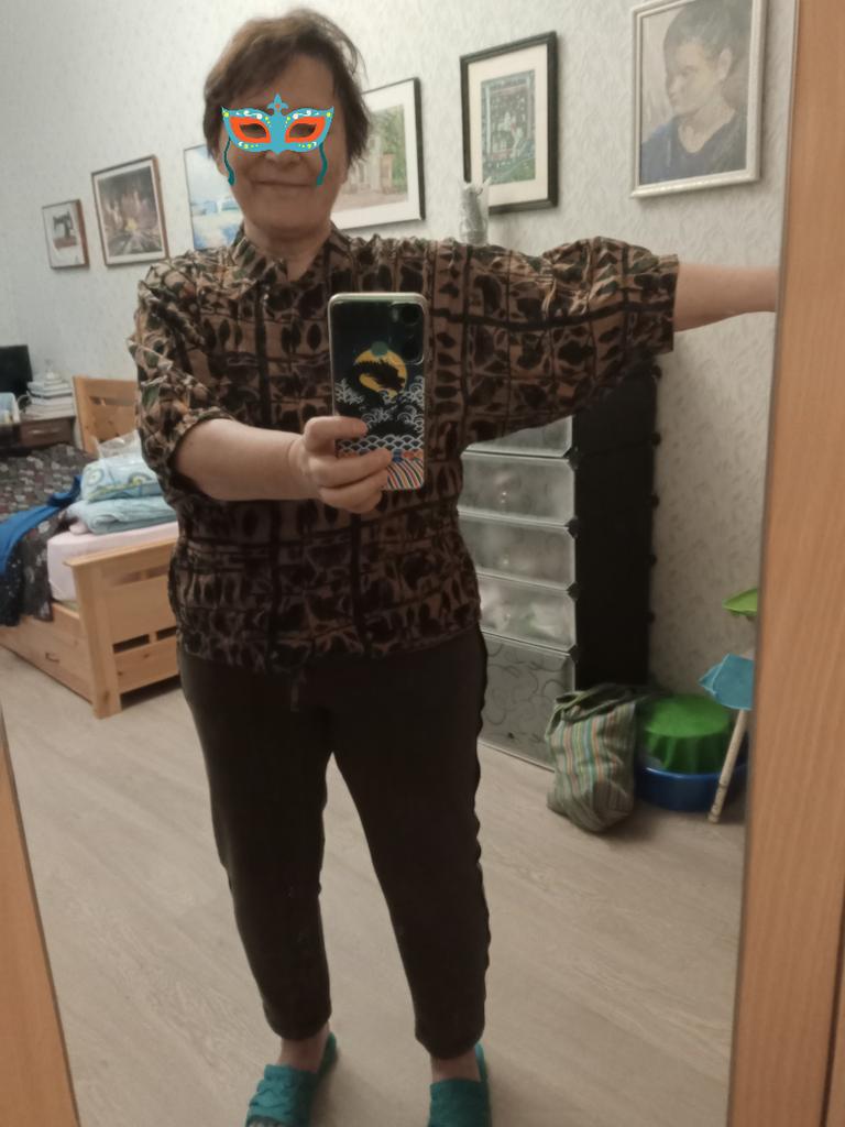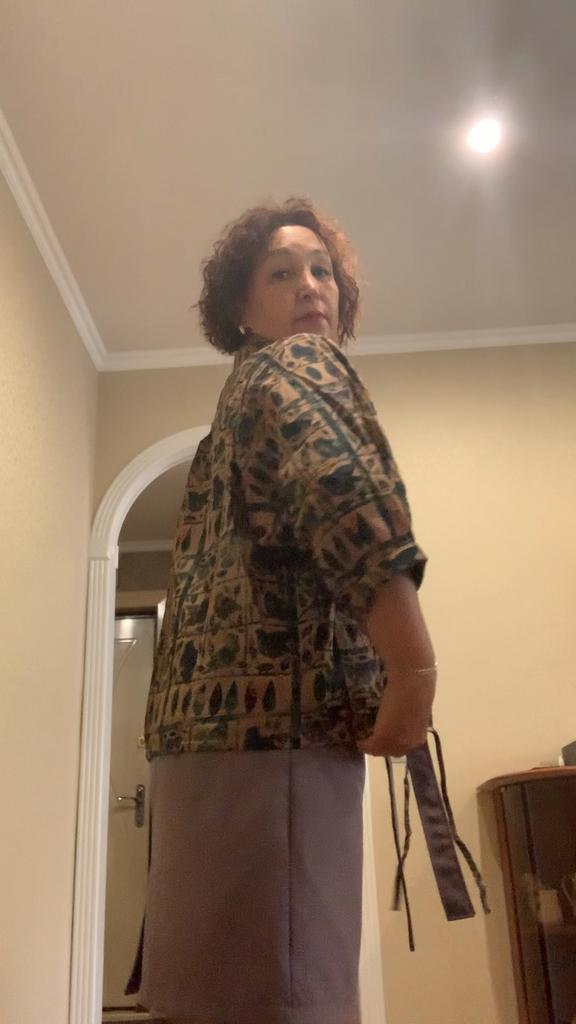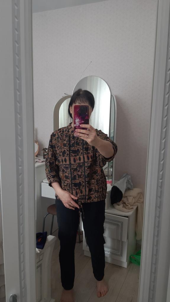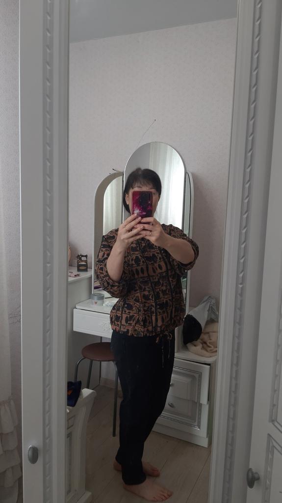 Everything is as in the picture, the fabric is nice, the size is appropriate, but I don't like the style of the sleeves - they are wide and the length is not clear....