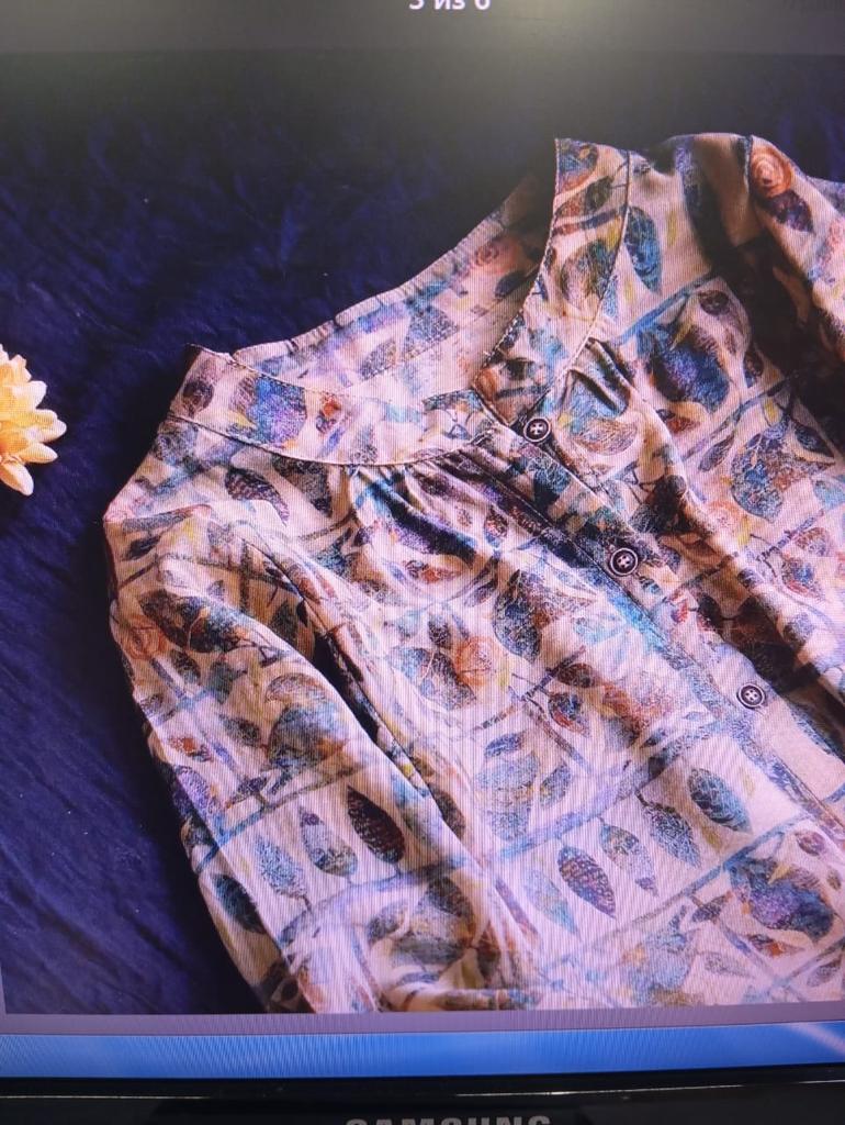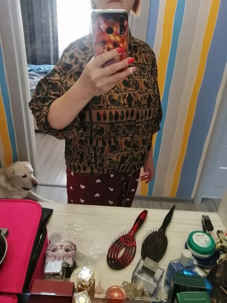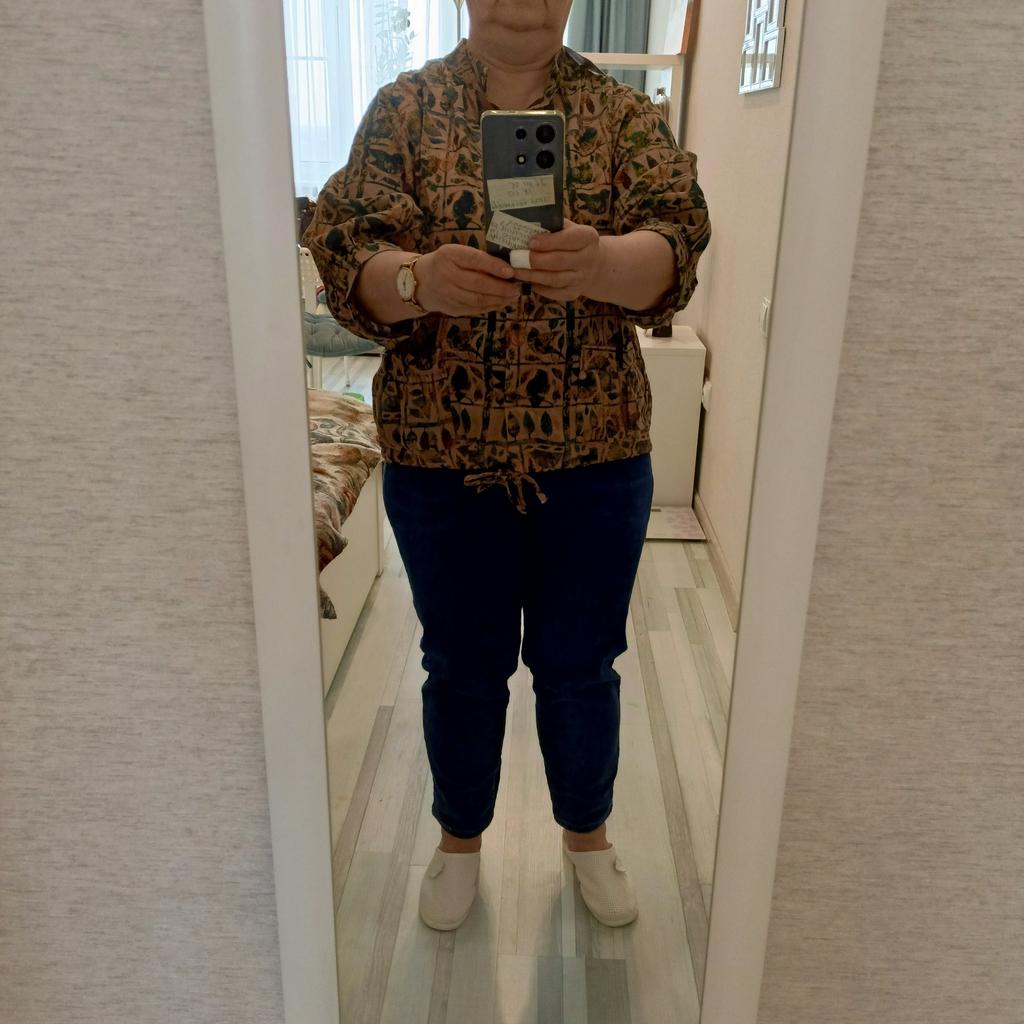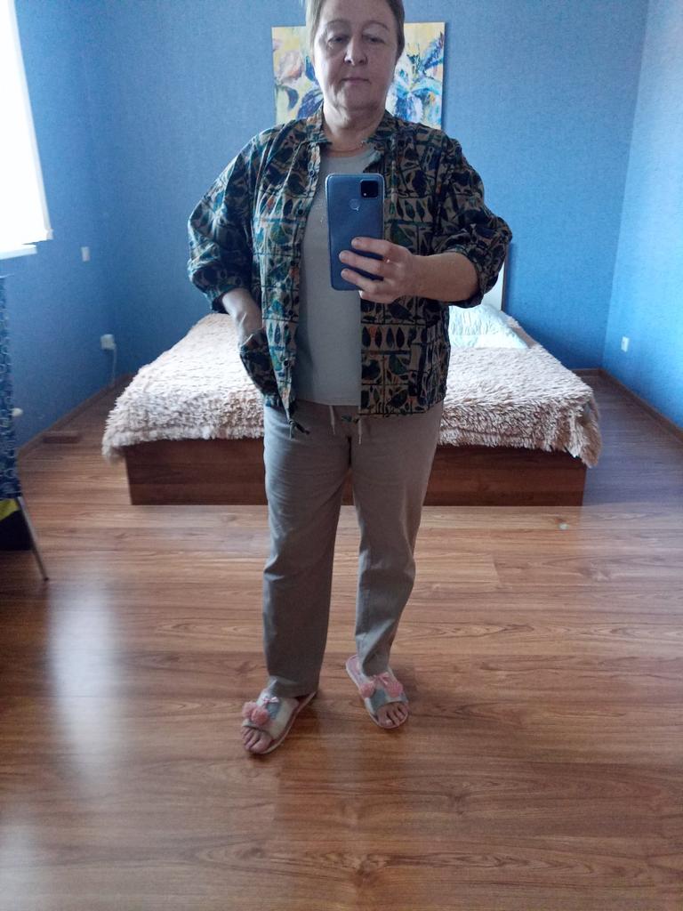 Everything is as in the picture, the fabric is nice, the size is appropriate, but I don't like the style of the sleeves - they are wide and the length is not clear....