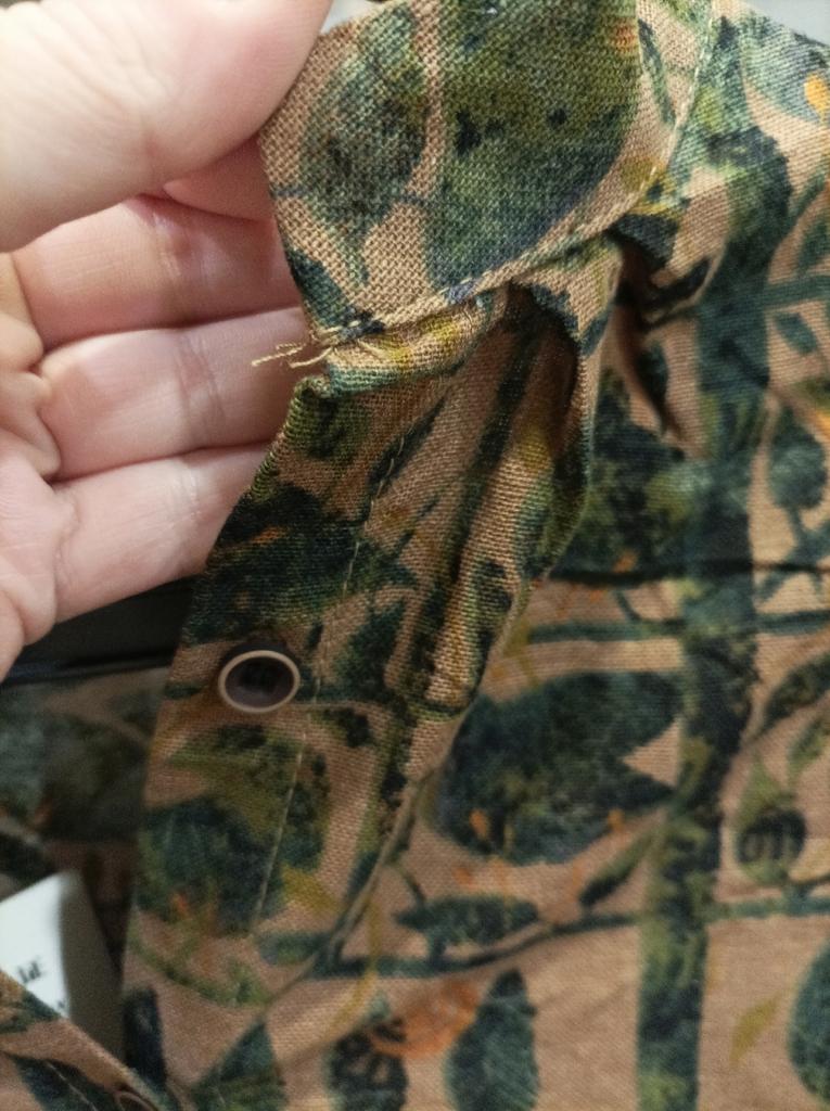 POOR QUALITY The fabric does not match the description, it is rough and stains. The seams are poorly finished, the threads stick out, "beard" on the seam. The buttons are sewn on in such a way that the threads stick out, you can pull and lose them. There are no care instructions. IT IS DIFFICULT TO RETURN THE GOODS.
