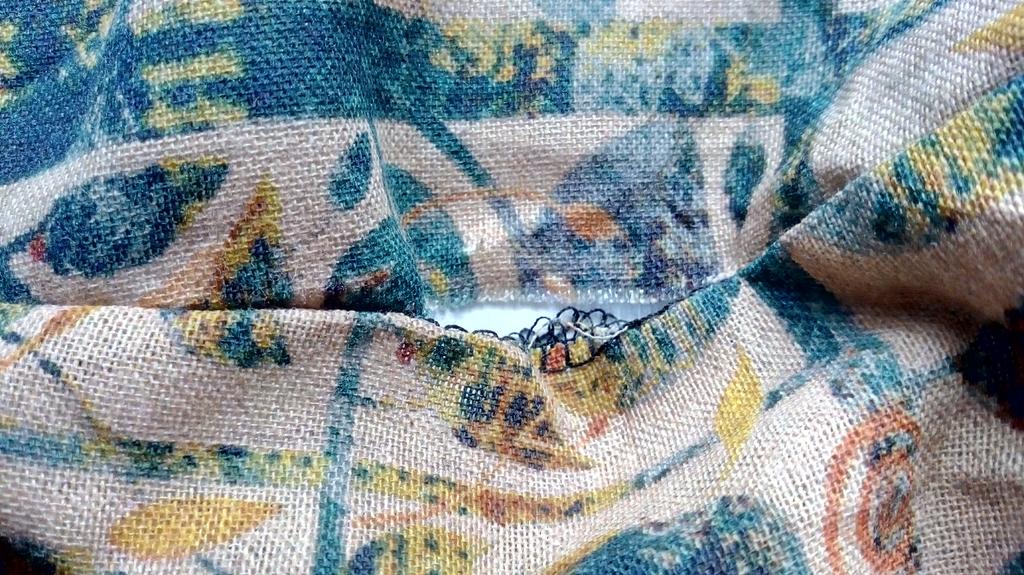 I wouldn't say it's linen or cotton, the material is very rough and hard, like calico for underwear, the threads stick out everywhere, the front part of the sweater doesn't meet, one end is shorter than the other. The quality of the sweater is clearly visible in the photo.
