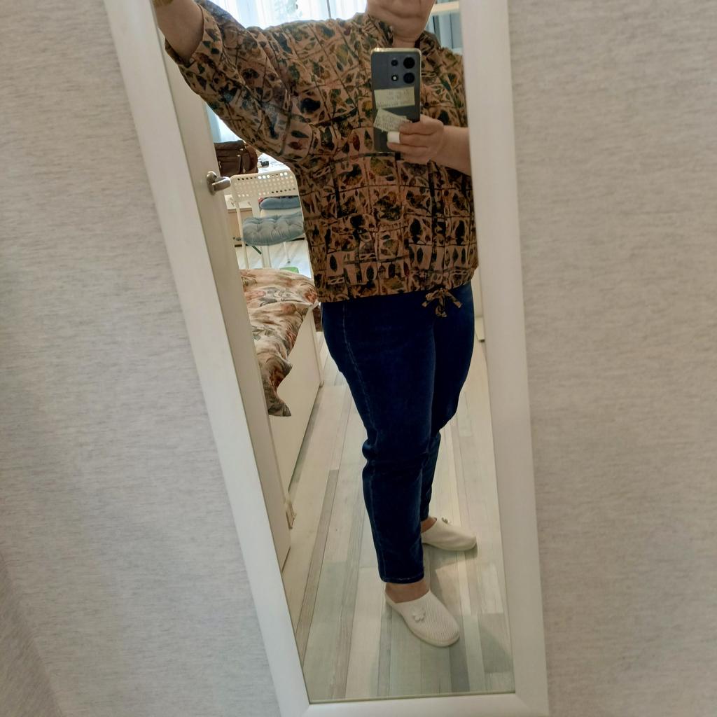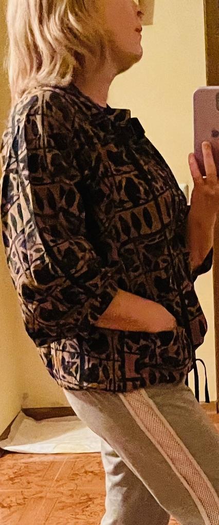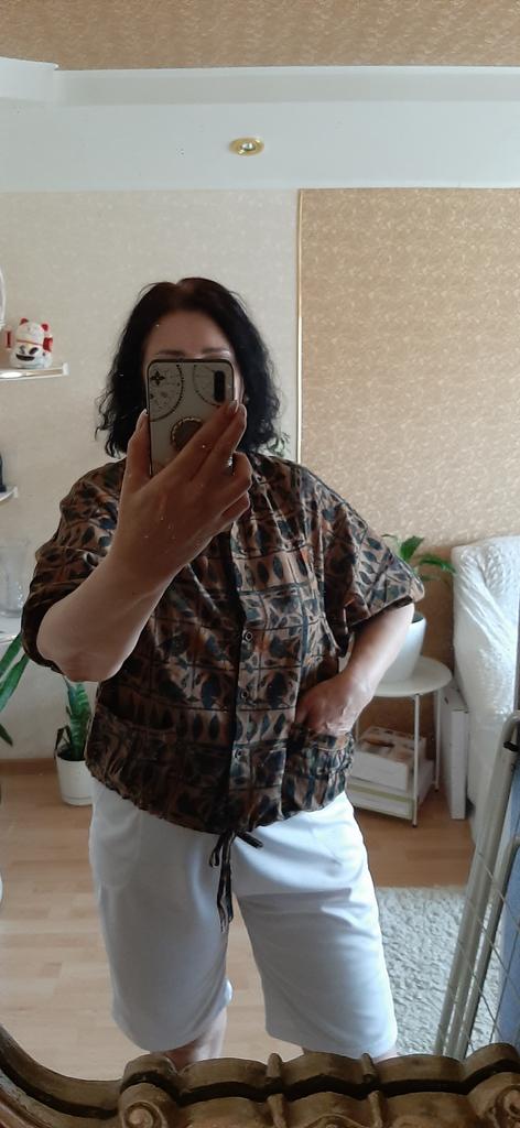 I am very satisfied, the blouse fits perfectly, I can also wear it as a jacket. I would be happy to recommend. Thank you very much