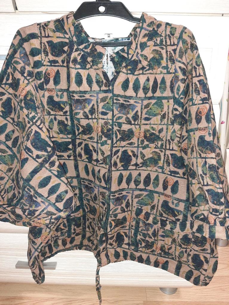 Beautiful and good quality fabric. It can be worn as a jacket or as a shirt.