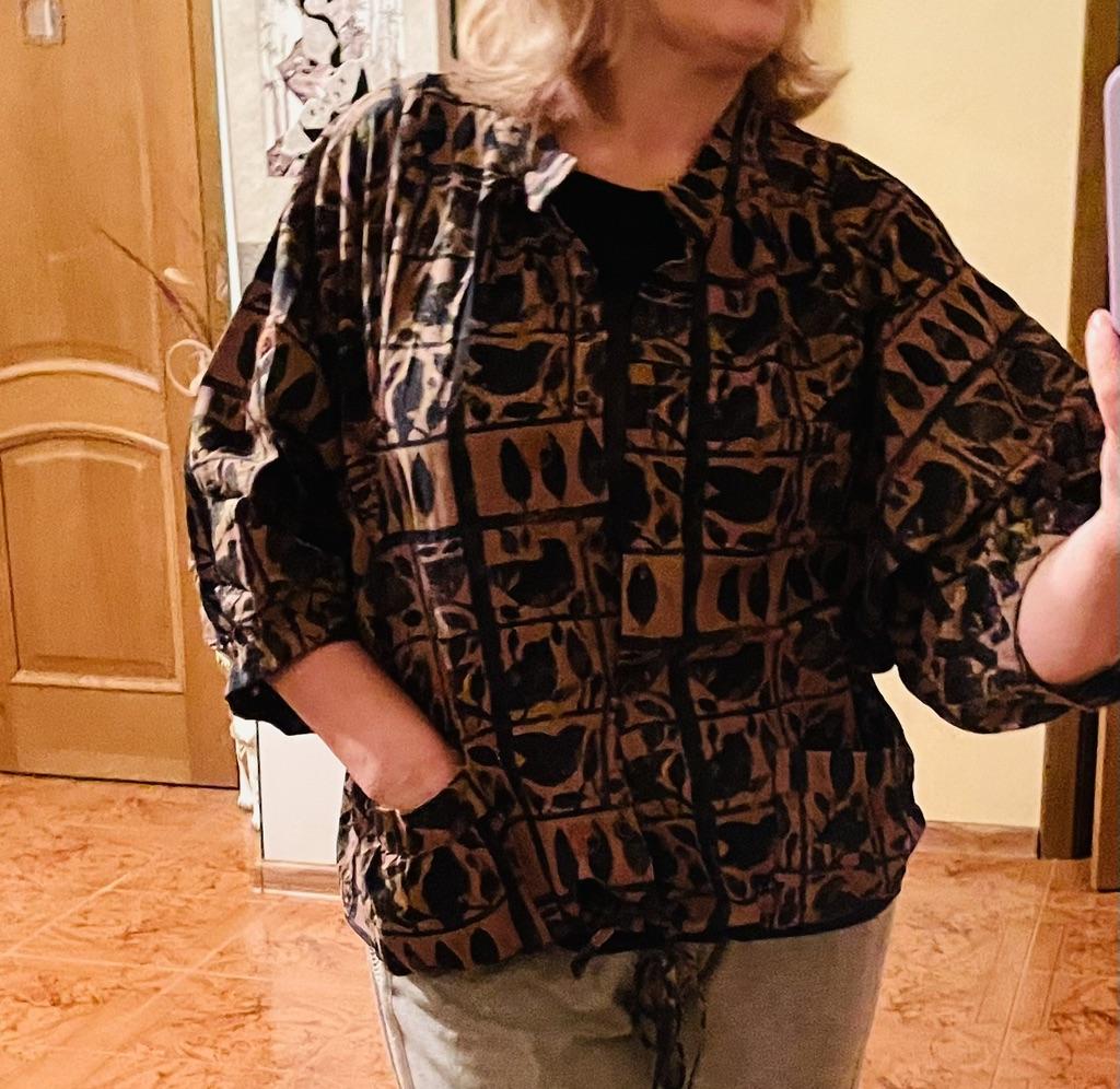The size fits (I'm 48, OT 88, OB 108.) Wide sleeves, the back is as I wanted - comfortable while driving, doesn't get dirty, soft, feels like a clap - the body breathes, but... the style is very Chinese-Japanese Probably, I should have taken a smaller size: L - it would have been better