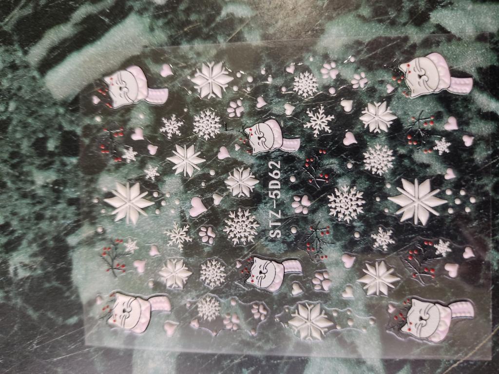 5D Christmas Adhesive Embossed Nail Sticker Decal Snowflake Nail Art Decoration