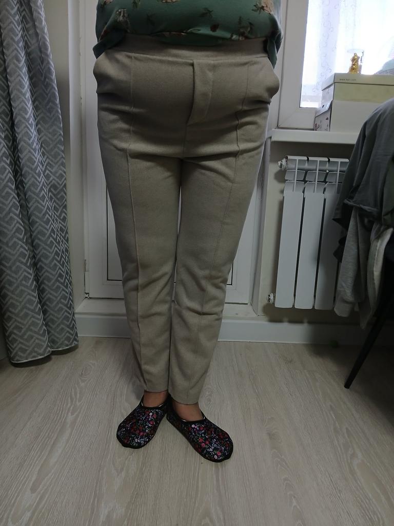 The trousers are warm, good for a dry autumn. They correspond to the size. Color coffee with milk.