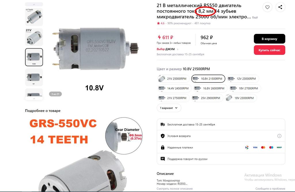 It is a pity that I did not have time to install this engine. Earlier, I bought the same engine, but due to my carelessness, I did not measure the diameter of the gear and bought it with a diameter of 10 mm. I ordered another one - with a diameter of 8.2 mm, and they also sent one with a diameter of 10 mm...now I have two unnecessary engines..."thank you" - to the assembler!