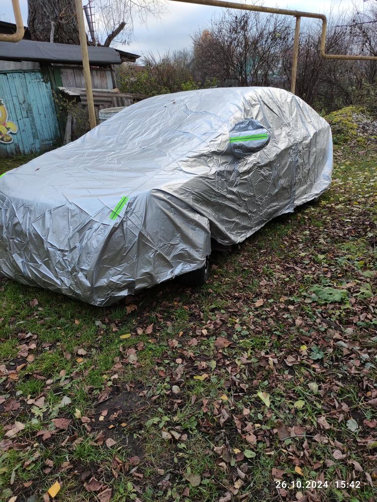 The cover is only suitable for the warm season. In rainy weather, if there are heavy rains, then moisture forms under the cover. Where it comes from is unclear. And this same moisture freezes to the car body. So, the cover is not suitable for winter.