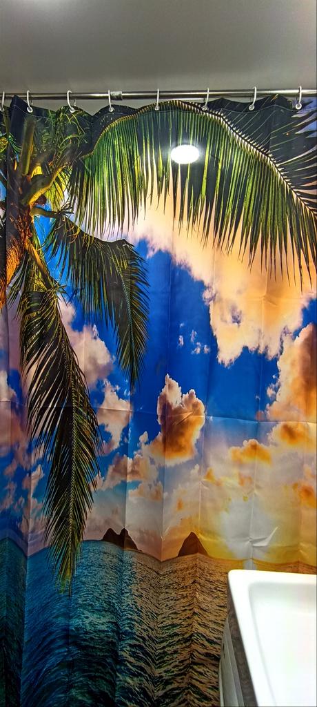 Very nice shower curtain. colors as shown. Nice clear picture.