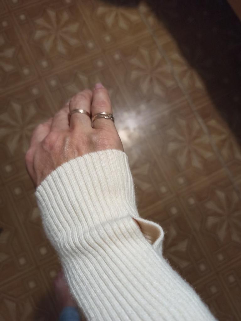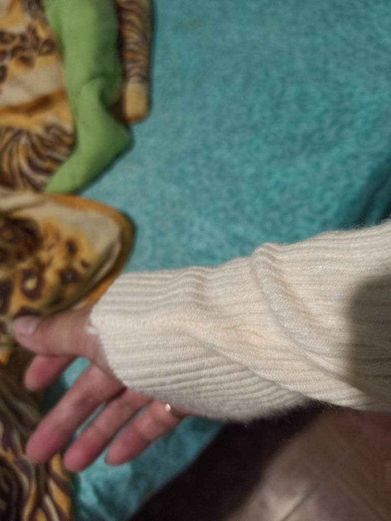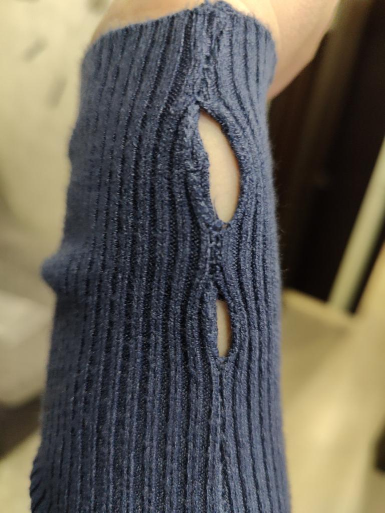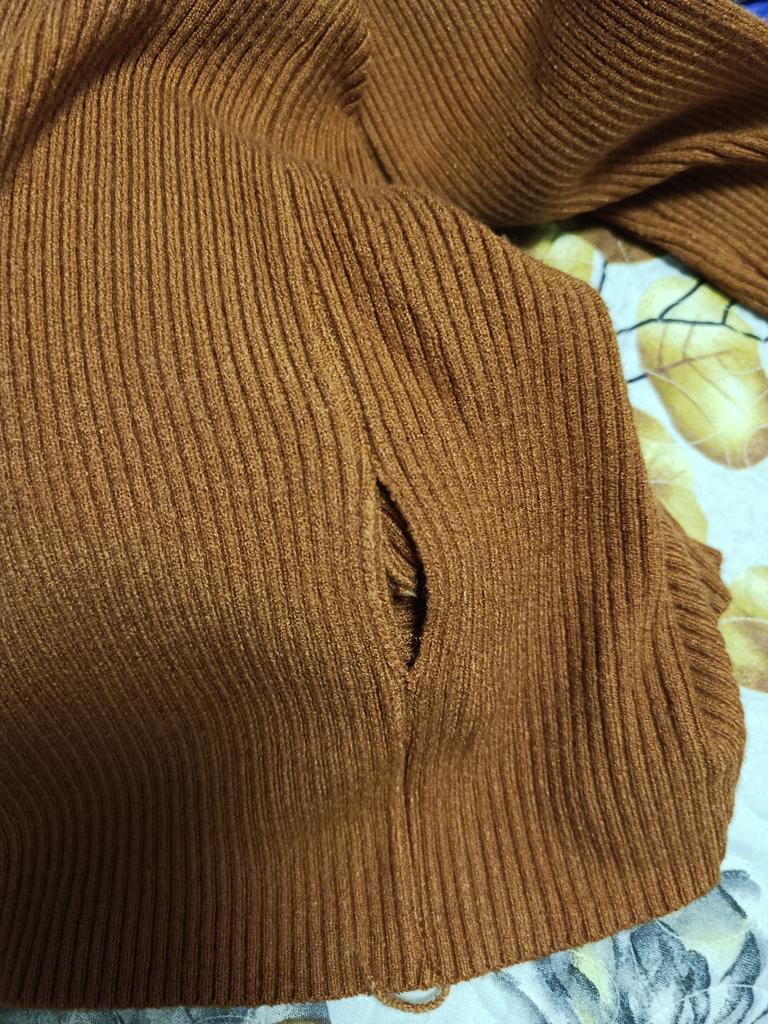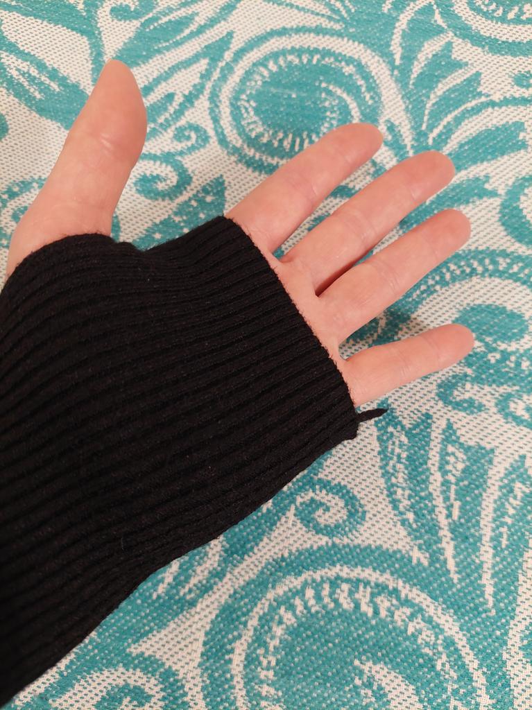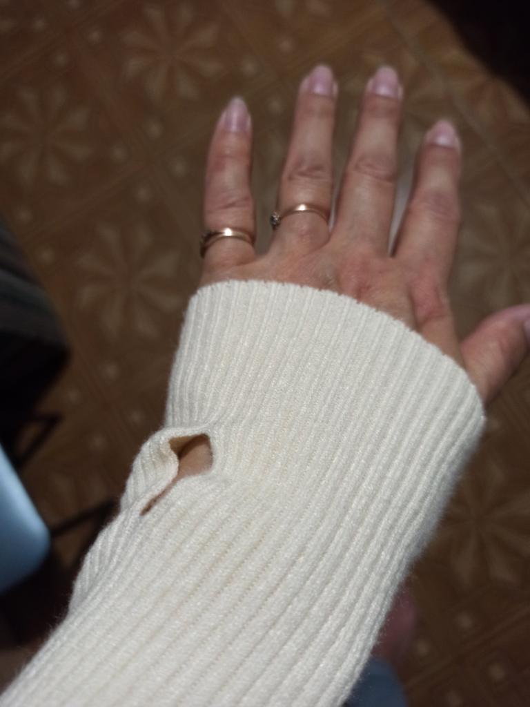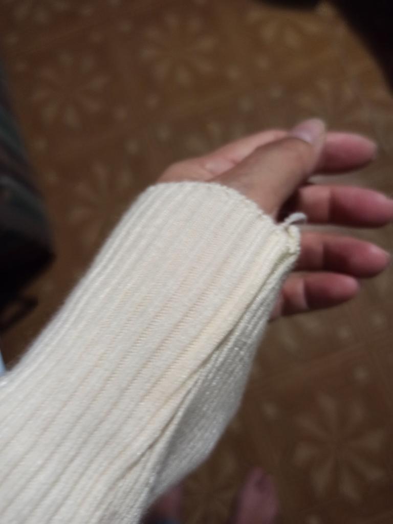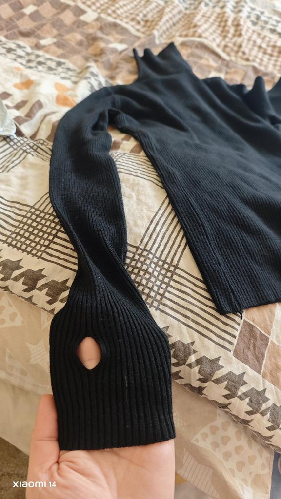 A XL sweater for a child, short and with a finger slit on the opposite side!!!