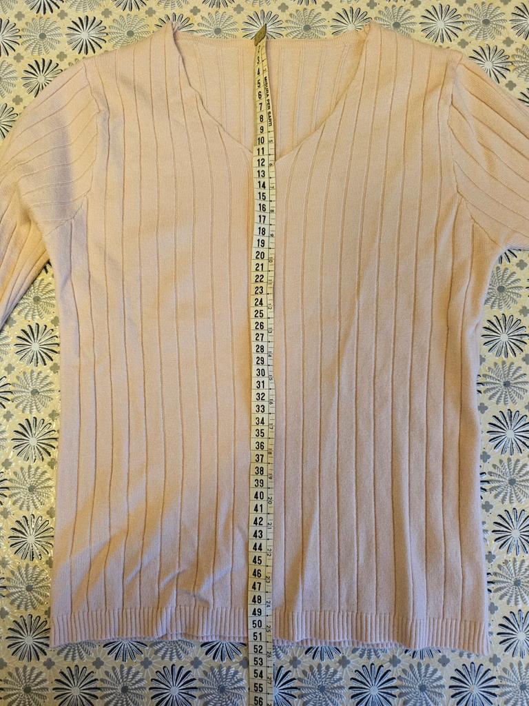 The jacket in the photo looks thicker, with a more voluminous knit. It's actually thin. Just wear the floor under something. Neat, no extra threads sticking out. At size 44 it is 88 tight. I would like the sleeve to be longer.