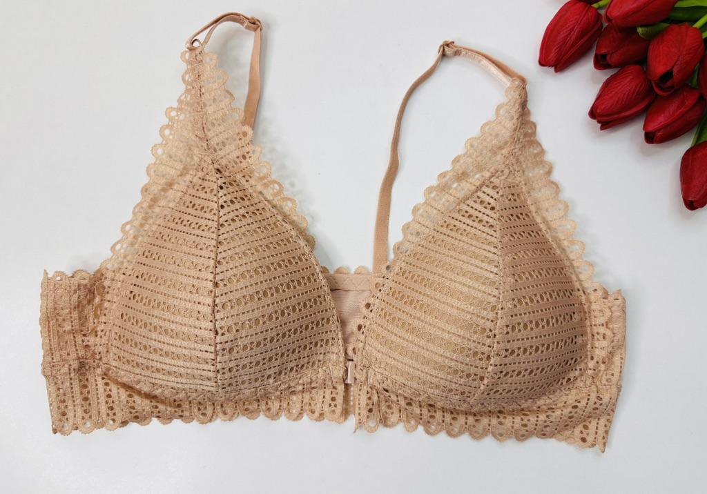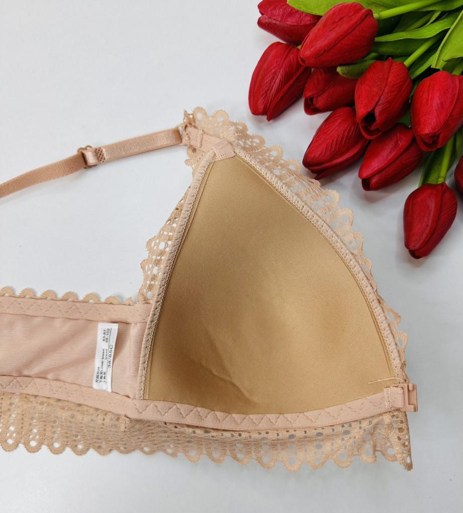 Lace Front Button Bralette Women's Underwear Sexy Backless Bra Without Bones Push Up Bra Triangle Thin Lingerie
