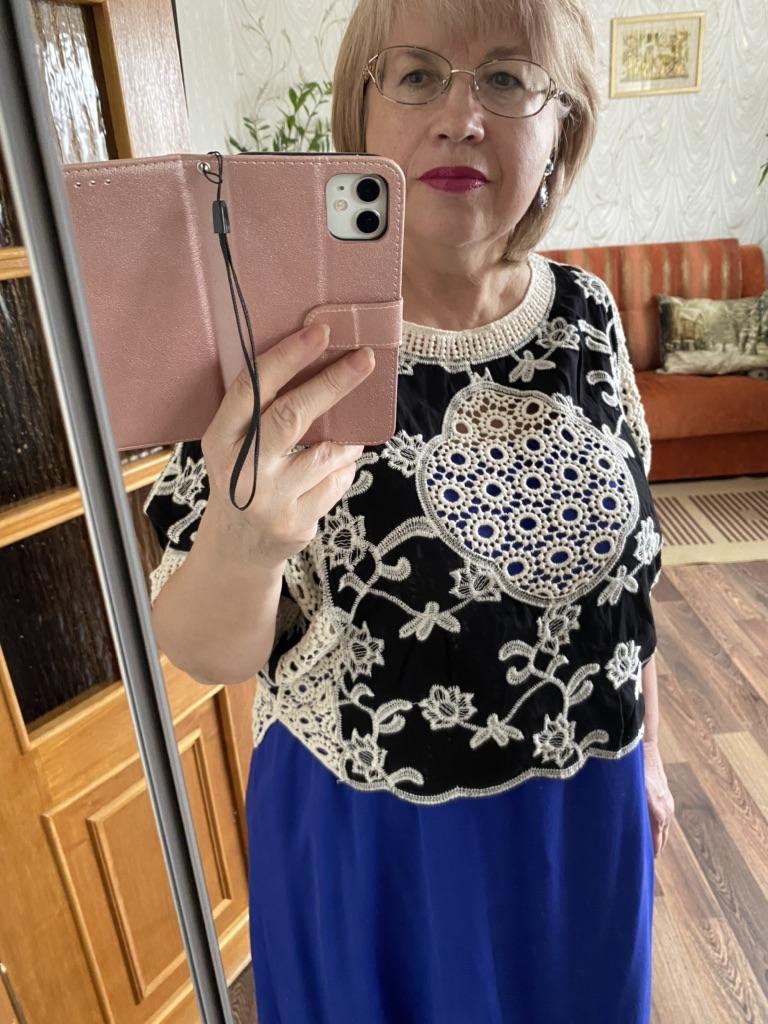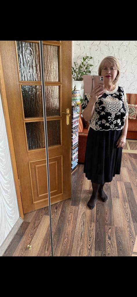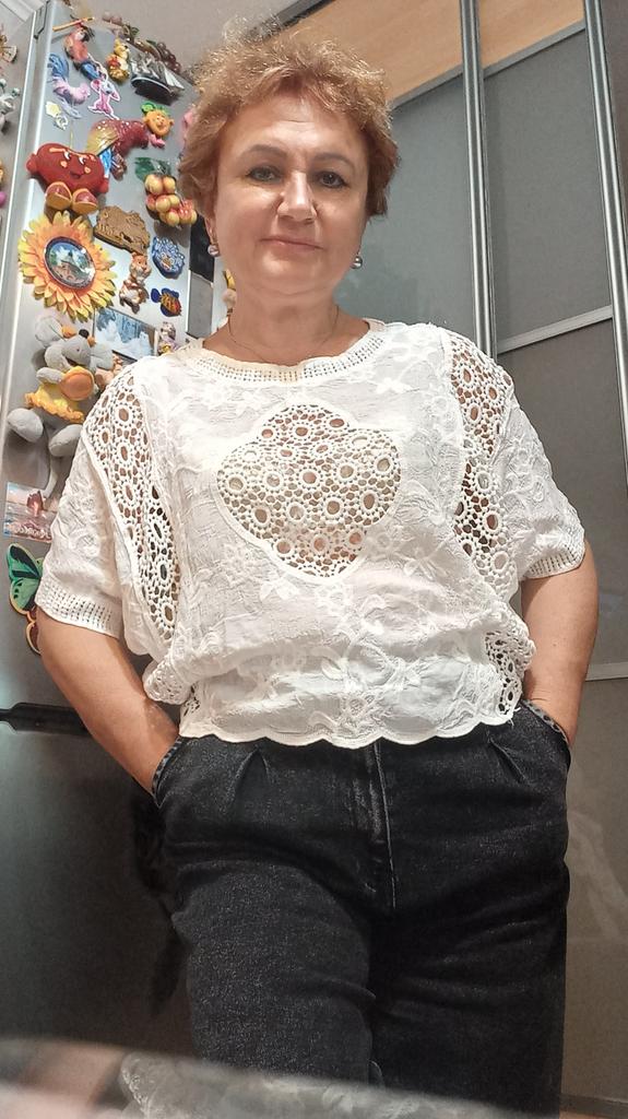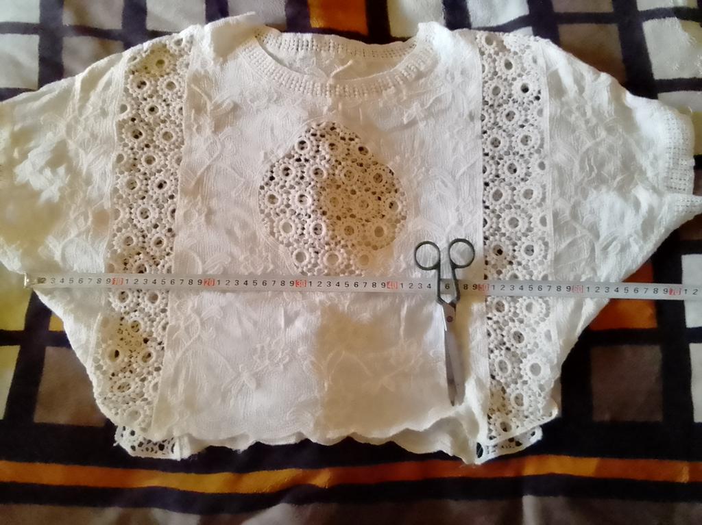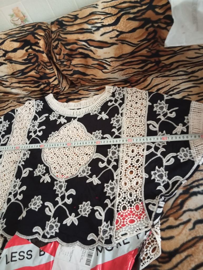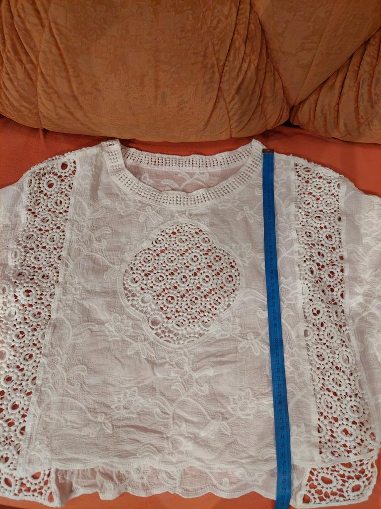 The blouse is beautiful, just short, for size 48, I recommend it.
