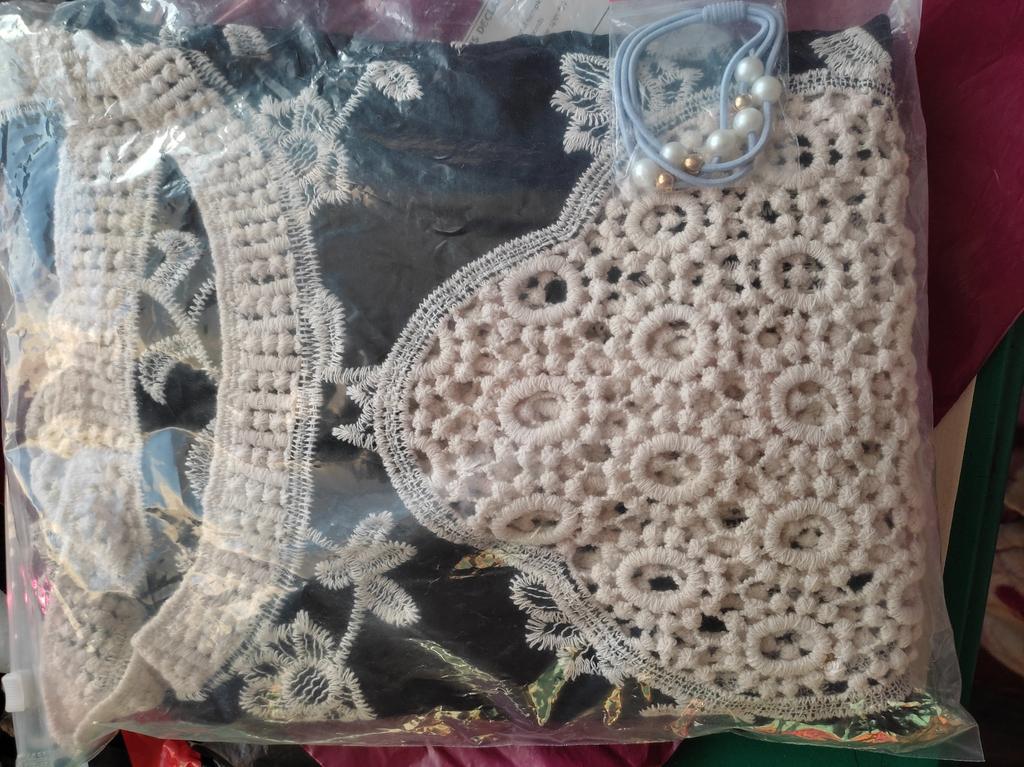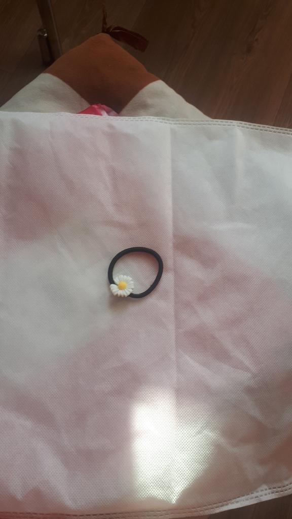 The blouse is adorable! Lightweight, suitable for hot weather. The back is slightly longer than the front. And thank you for the gift, a pink rubber band with pearls💗