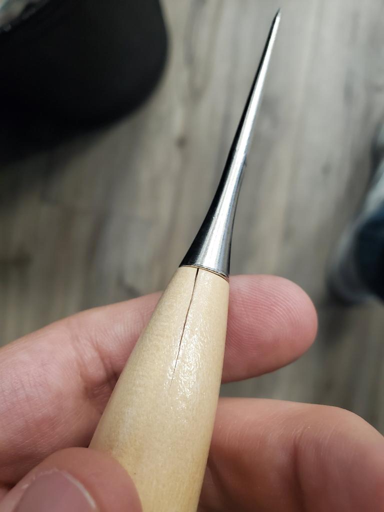 The awl is crooked and not sharp enough.